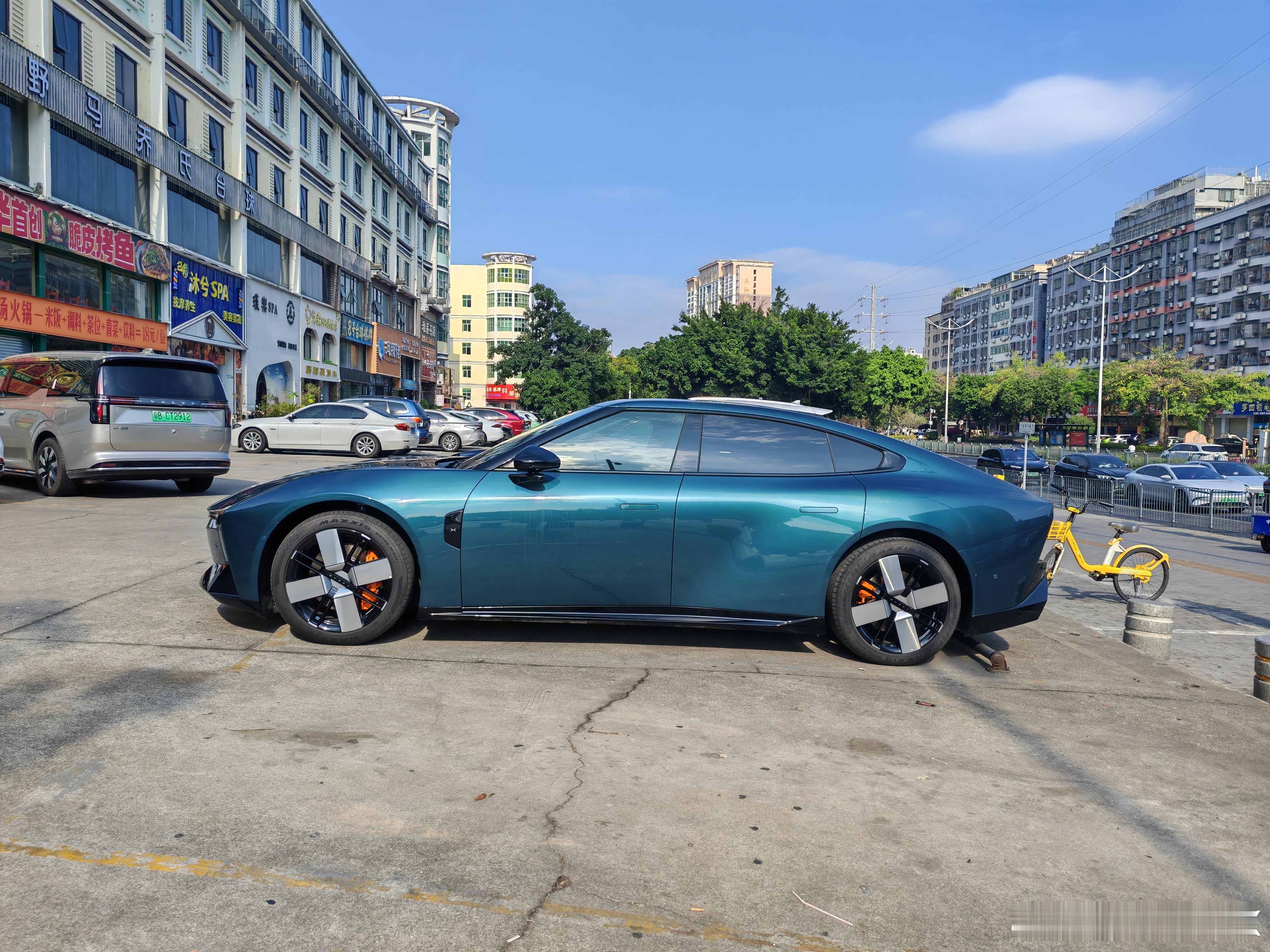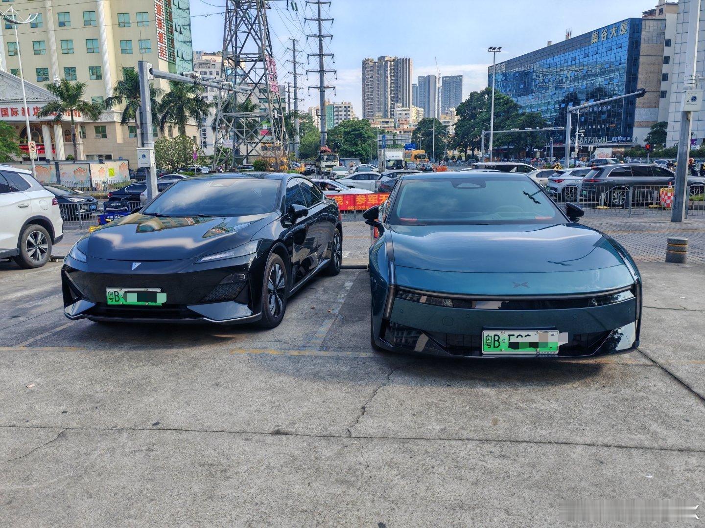 在停车场偶遇2025款小鹏P7和深蓝SL03,小鹏P7的侧面真是太漂亮了!