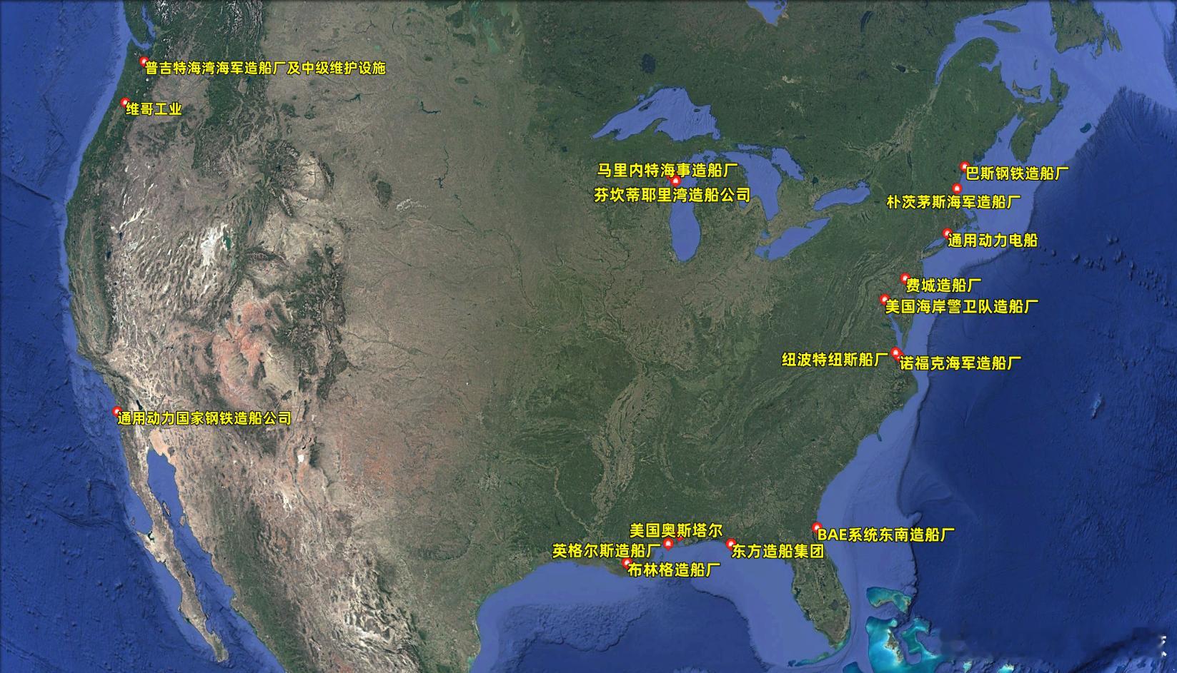特朗普宣布打造黄金舰队 美国现存主要的军工造船厂、特种船厂以及大型维修船厂分布地图 烽火问鼎计划美军将打造黄金舰队