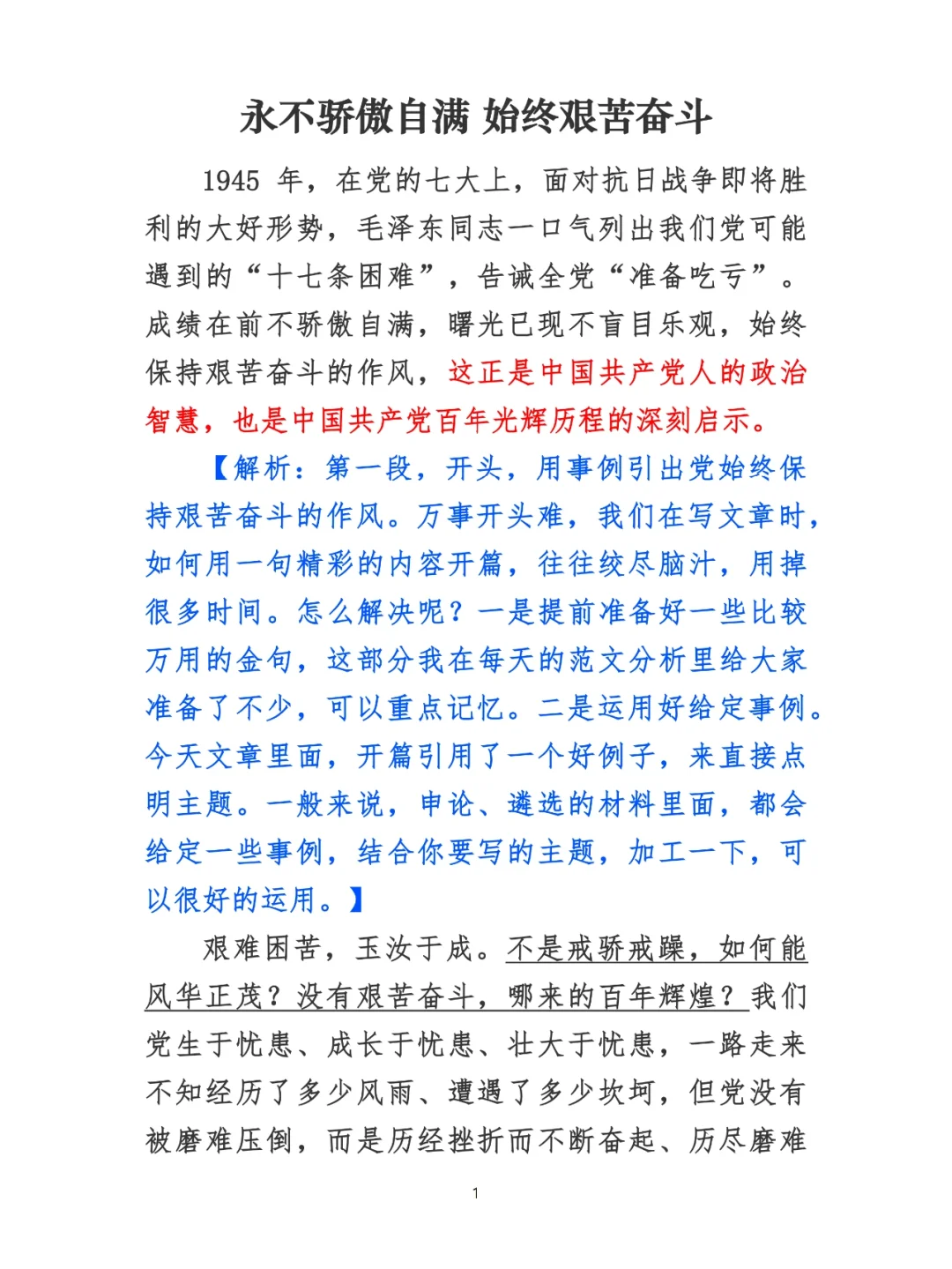 申论范文:永不骄傲自满 始终艰苦奋斗