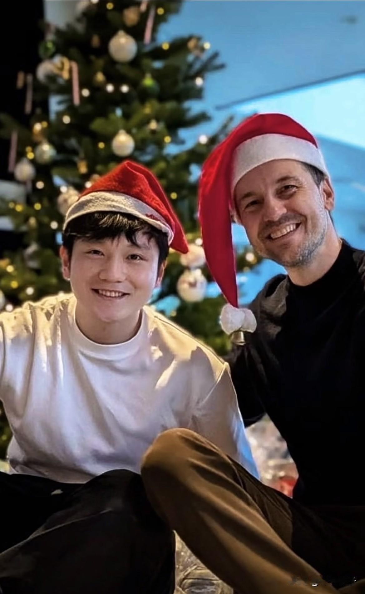 晚睡福利,终于等到戴着圣诞帽和波叔一起过圣诞节的樊振东了!东东和波叔一起的合照笑