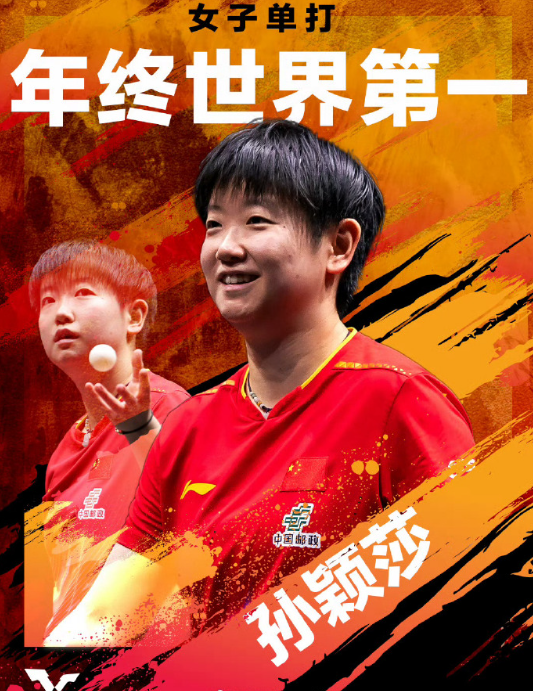 WTT世界乒联发文:2022—2025,恭喜孙颖莎连续四年登顶女子单打年终世界第一