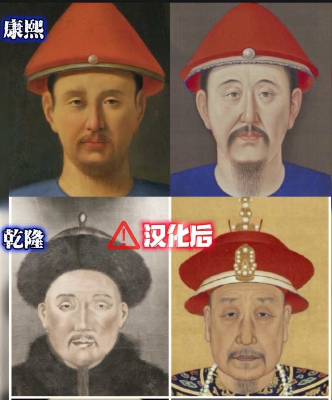 叶卡捷琳娜评价乾隆长相用词是“扁阔”的脸,而在汉化版的乾隆画里,乾隆脸型明显是瘦