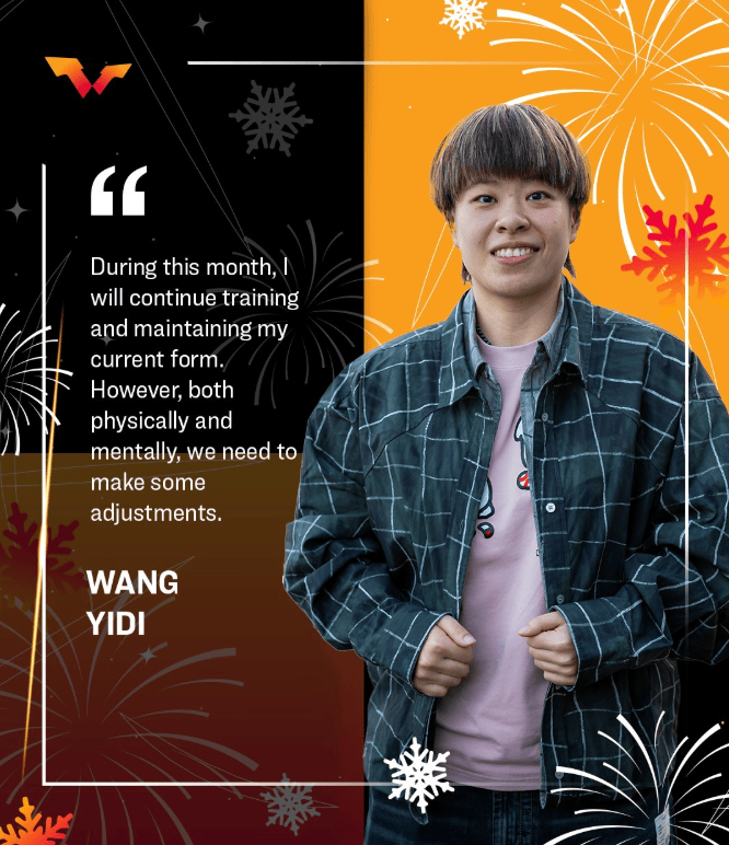 王艺迪:这个月,我会继续训练,保持当前的竞技状态。不过,无论是身体上还是心理上,我们都需要做出一些调整。