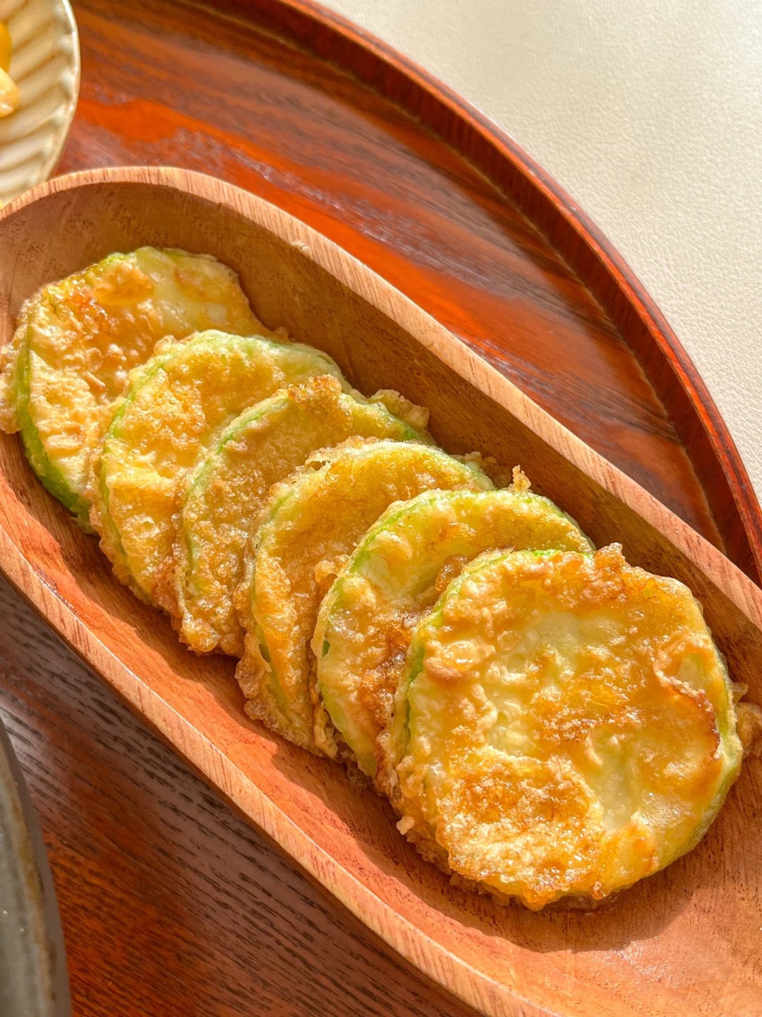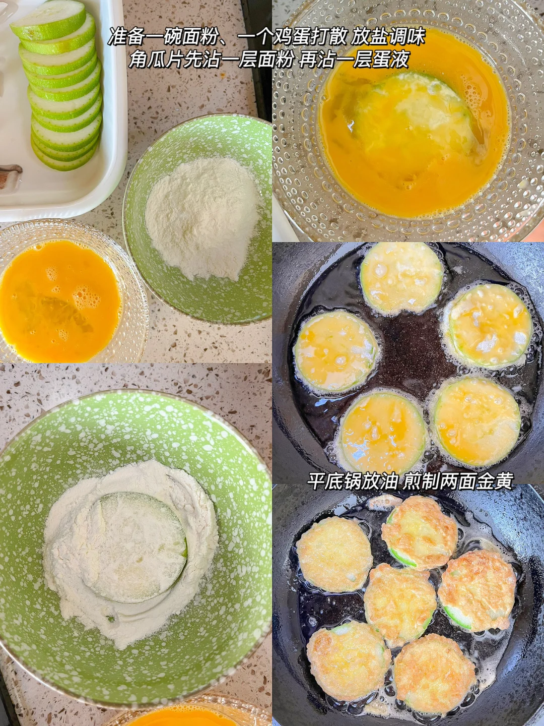 2.角瓜片沾一层面粉,再沾一层鸡蛋液