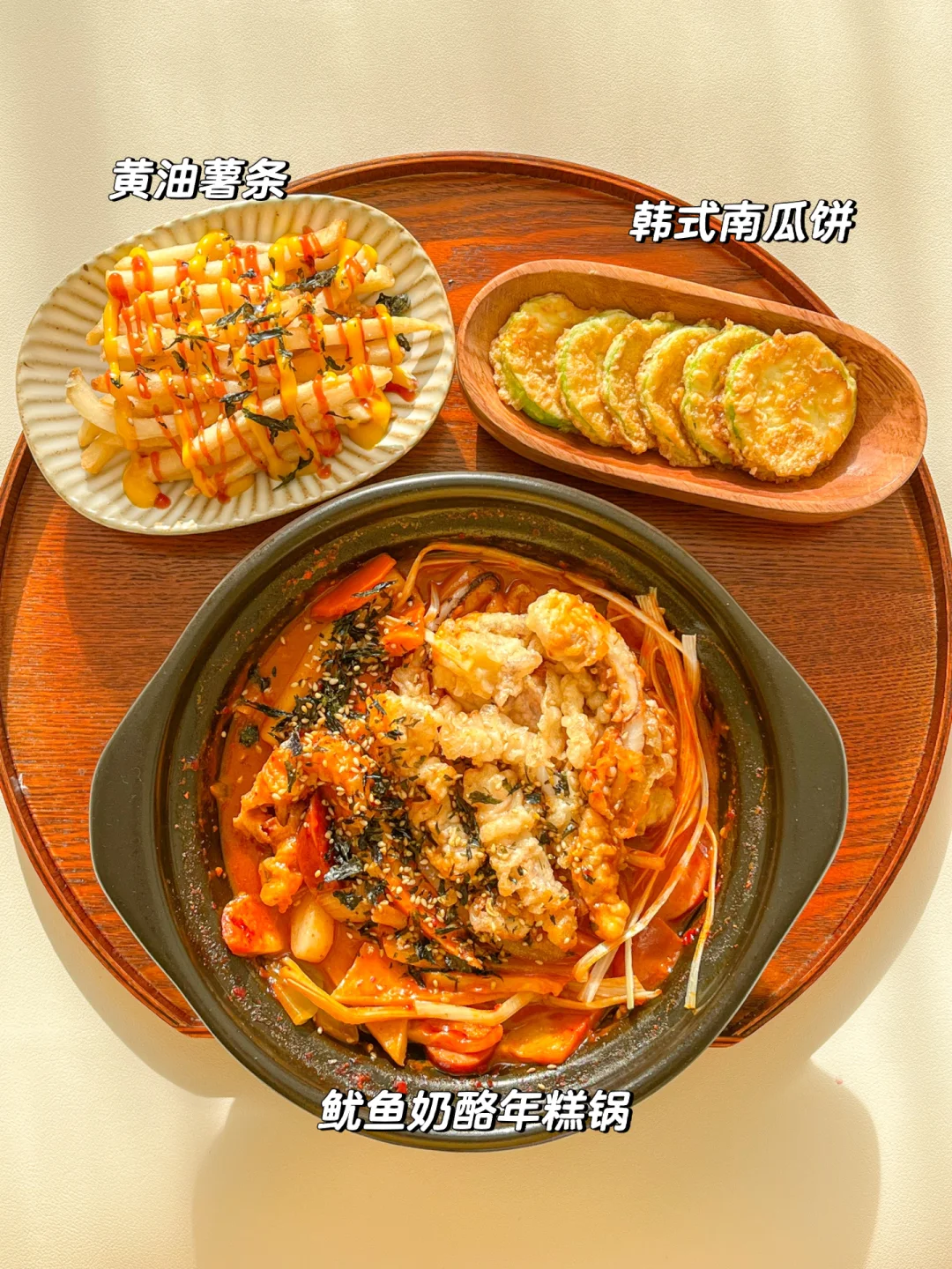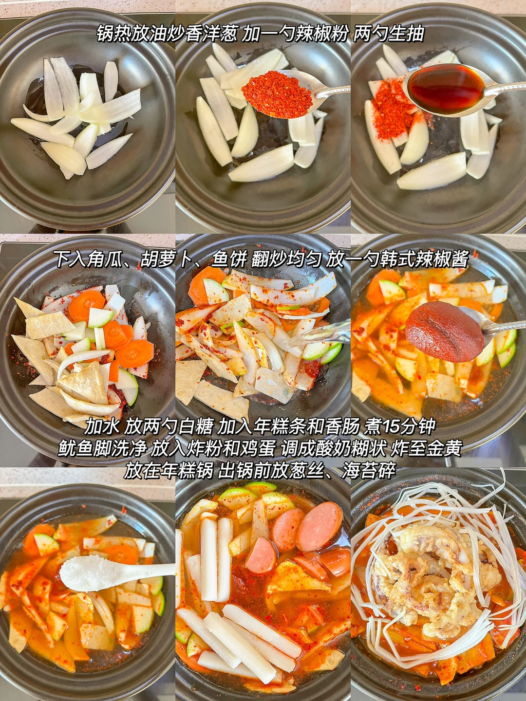 冬天来了就想吃点热呼呼的,最爱的就是咕嘟咕嘟各式各样的锅了,今天做个炸鱿鱼年糕锅。味道很不错~炸得酥酥脆脆的鱿鱼和甜甜辣辣的年糕火锅组合!
