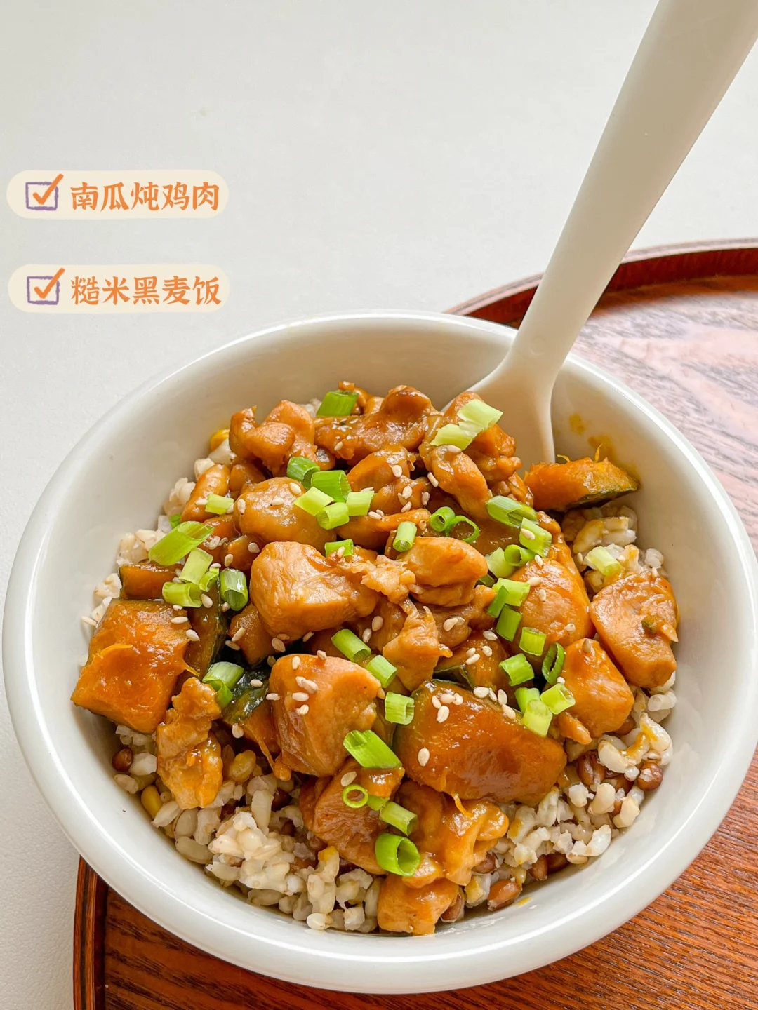 ❷南瓜炖鸡肉杂粮饭