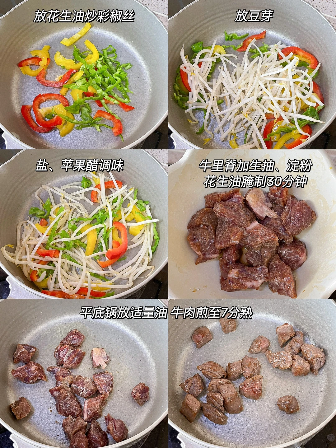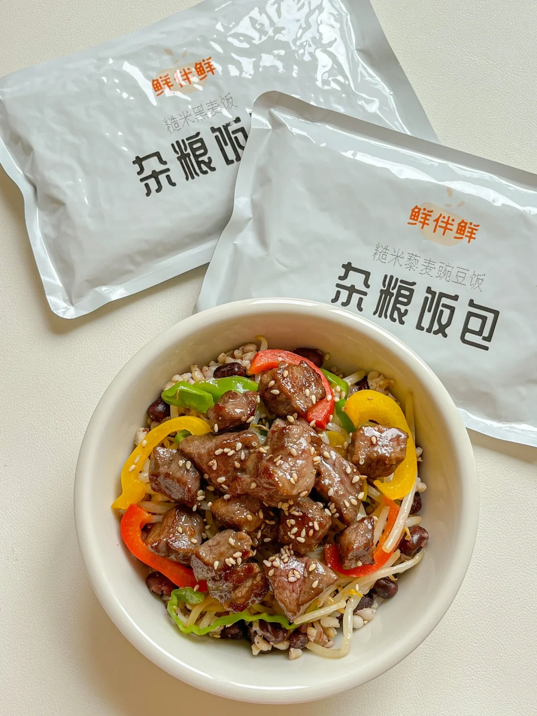 ❹烤牛肉豆芽彩椒杂粮饭