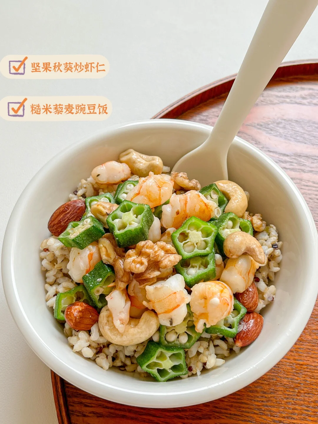 ❸坚果秋葵虾仁杂粮饭