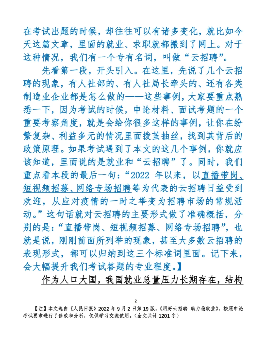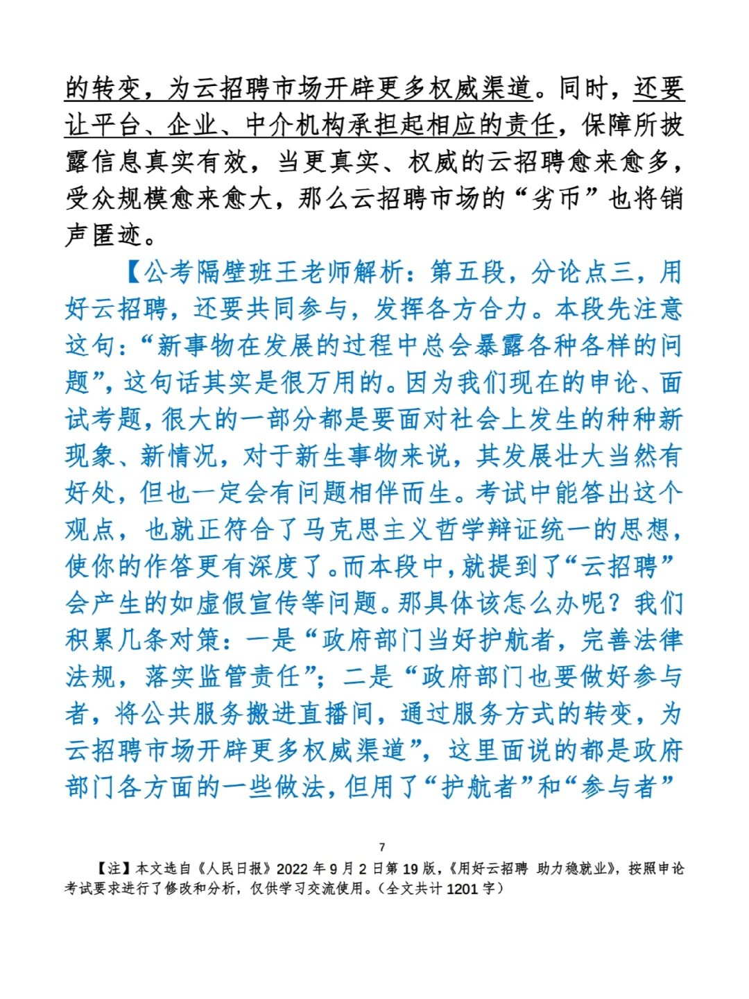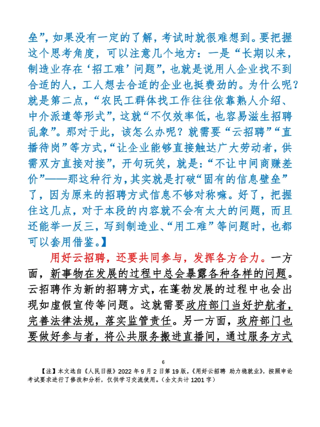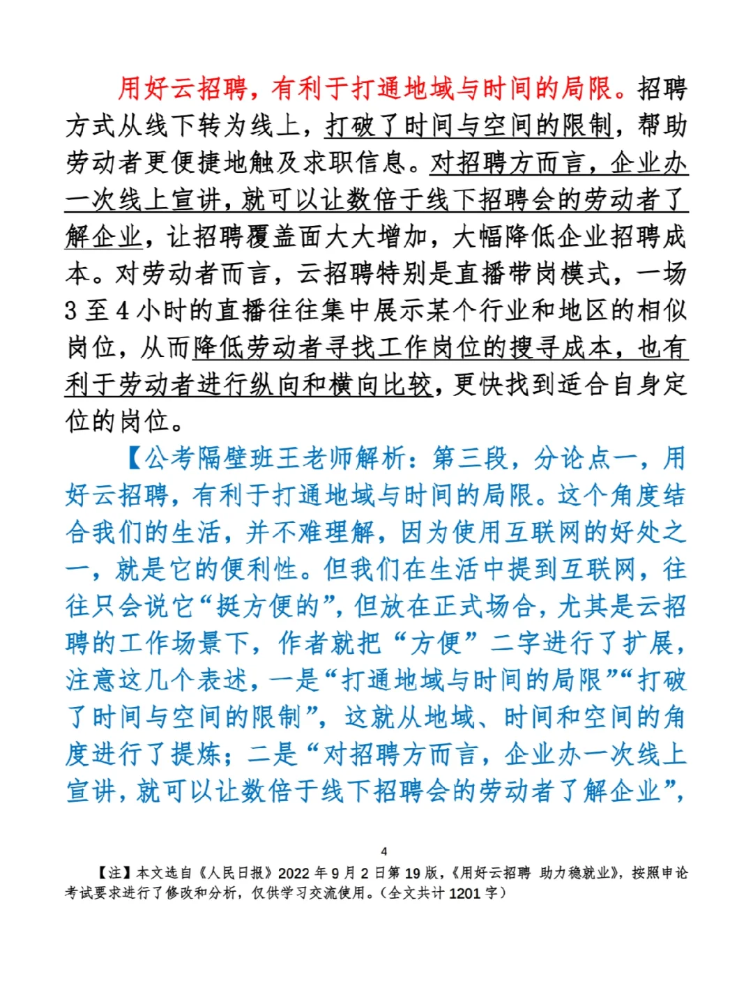 今日打卡作业: 1. 选一句你最喜欢的金句 2. 抄写全文红字+划线部分内容 3. 写完后在留言区打卡 ⭐️ ⭐️ ⭐️ ⭐️ ⭐️ ⭐️ 如何抄写:每天的抄写文章以图片形式发在“公考隔壁班王老师”账号,红色字是重点句和结构句,黑色字是正文,蓝色字是解析,大家抄写时不必抄蓝色字。建议先通读全文(包括蓝色解析部分),做到心中有数再开始抄写,效果会更好。 关于文章:抄写文章来源于人民日报,但每篇文章我都根据申论考试要求进行了修改,主要集中在四个方面:一是重写或修改开头、结尾;二是统一段首句句式结构;三是调整段落字数,使文章结构更均衡;四是简化复杂长难句,使之更具可模仿性。每篇文章修改幅度不同,无论修改多少,都是基于申论考试要求,毫无对人民日报文章品评之意。(此处致敬人民日报) 关于解析:我会在文章每段后面加一段蓝色字的解析,是我自己在抄写时的感悟,篇幅时间有限,不能面面俱到,但求重点突出。如果你有其他感悟,也希望能在评论里分享,我们相互学习、共同进步。 ⭐️ ⭐️ ⭐️ ⭐️ ⭐️ ⭐️ 这里是公考隔壁班王老师独创的“每天半小时・申论80分”抄写团,欢迎加入我们!