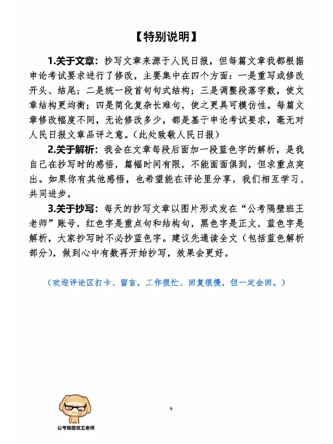 这里是公考隔壁班王老师独创的“每天半小时 申论80分”抄写团,欢迎加入我们!