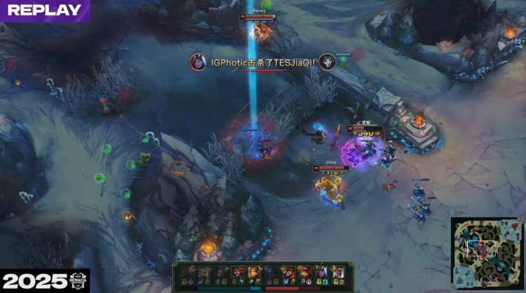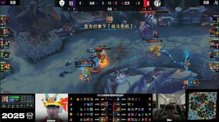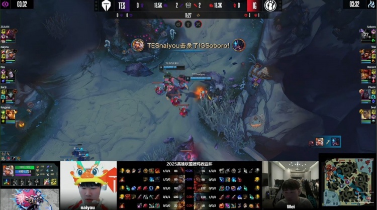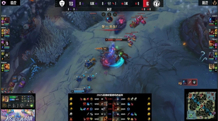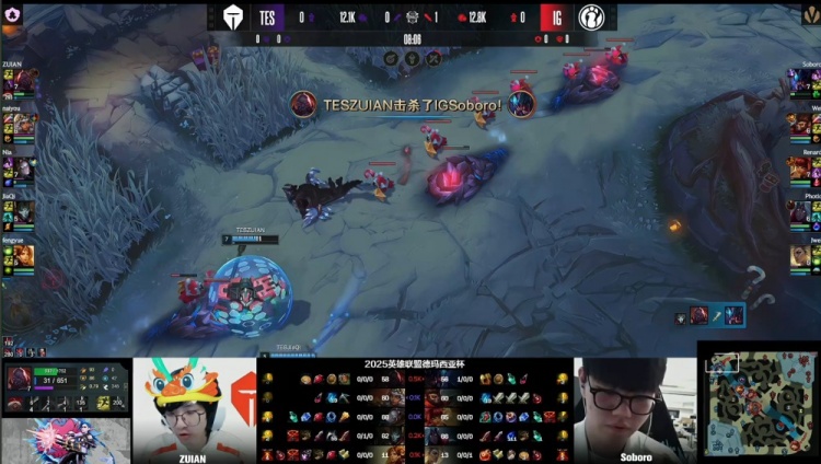 [11:25]iG两人下路抓掉推线过深的ZUIAN赛恩,iG此前拿到三条巢虫。