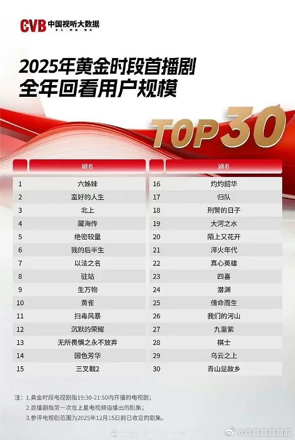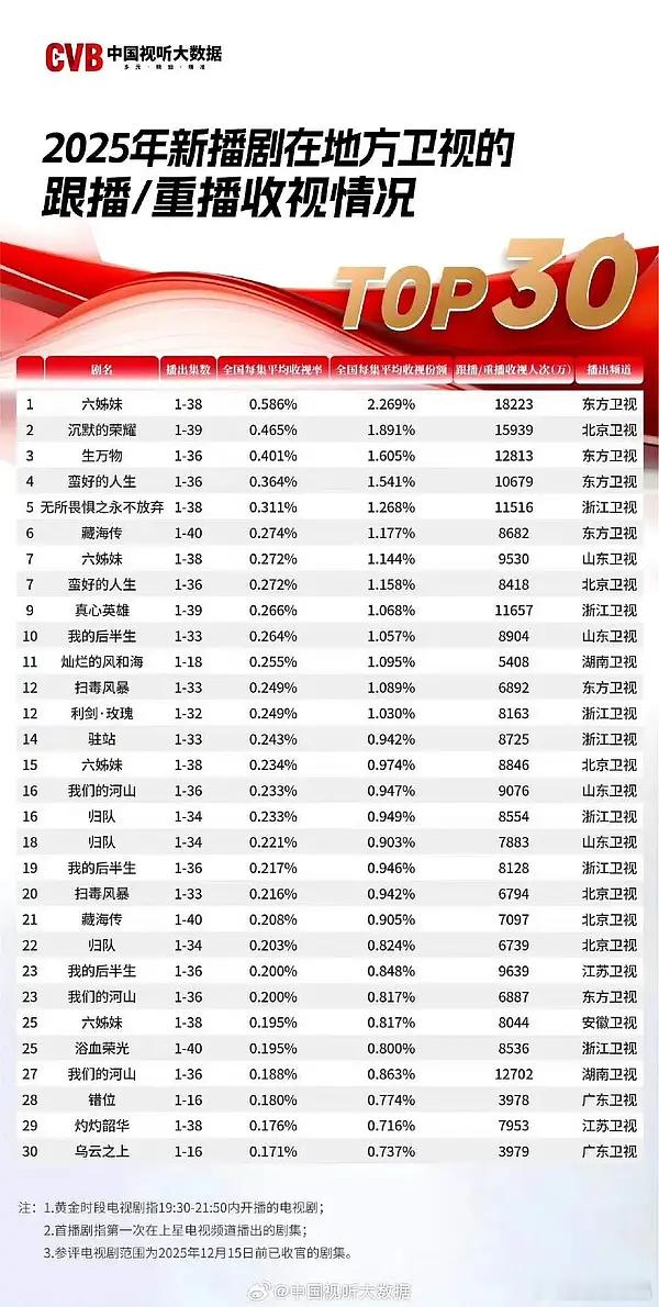 今年cvb年榜出炉了,央视的《六姊妹》成最大赢家,地方卫视的《余生有涯》成最大赢家。