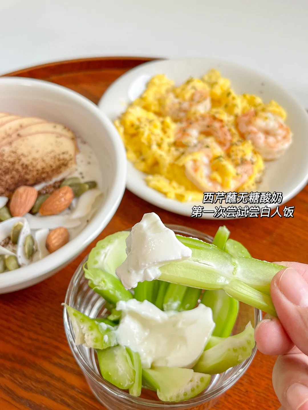 第一次尝试了白人饭 西芹蘸酸奶 还不错
