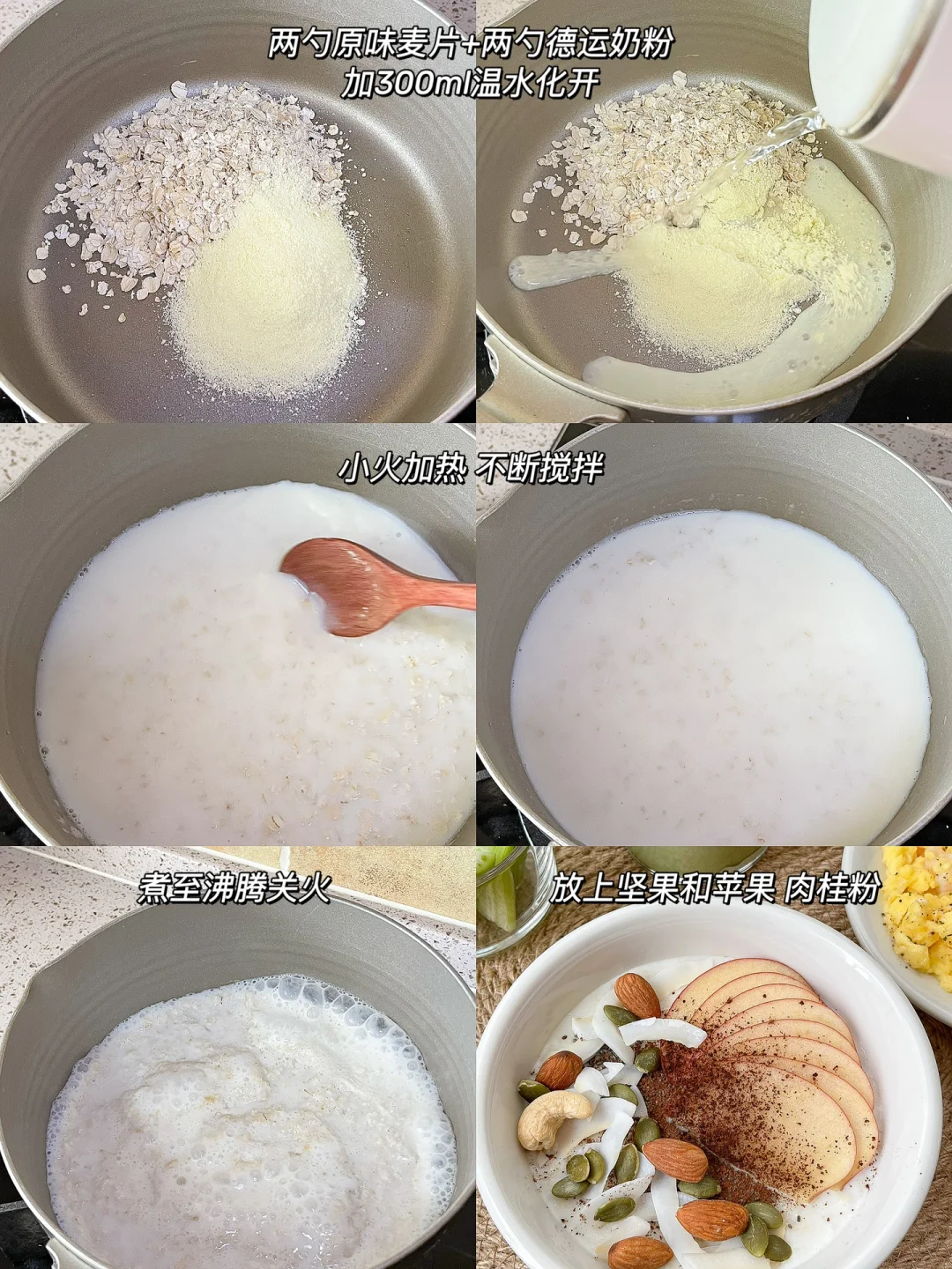 软软糯糯的原味麦片配上肉桂粉和苹果