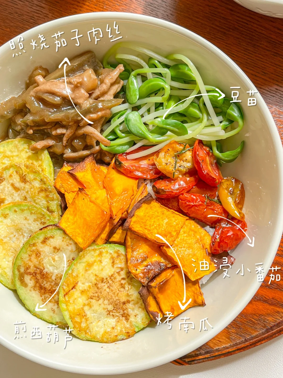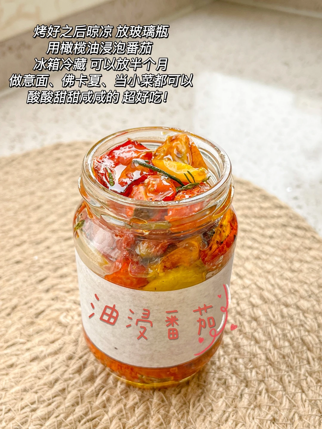 我又来吃杂蔬彩虹能量盘啦 认真的吃好每一餐 尽量吃的丰富 摄入足够的蛋白质 维生素 淀粉类 脂肪 今天的组合非常好吃😋 简单炒一炒 煎一煎 就能做出一盘诱人的优质减脂餐 吃起来不要太满足~ 还做了一瓶油浸小番茄 真的太香太香了 烤的时候整个厨房都是好闻的香料味 做法很简单 西式料理很多都可以放 配法棍、意面、吐司、大虾、牛肉都好吃! 还可以烤一点大蒜进去 会更香 玻璃瓶子要提前消毒 夏天可以放半个月