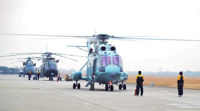 中航昌河飞机制造厂(也就是372厂)的机场上,停放着完成总装下线,正在进行出厂测试的直升机,最前面是海军型的搜救型直-18,后面那架是陆航的直八,最后面是直八宽。在重直研制成功之前,直-8/18系列直升机,还是国内起飞重量最大的直升机。