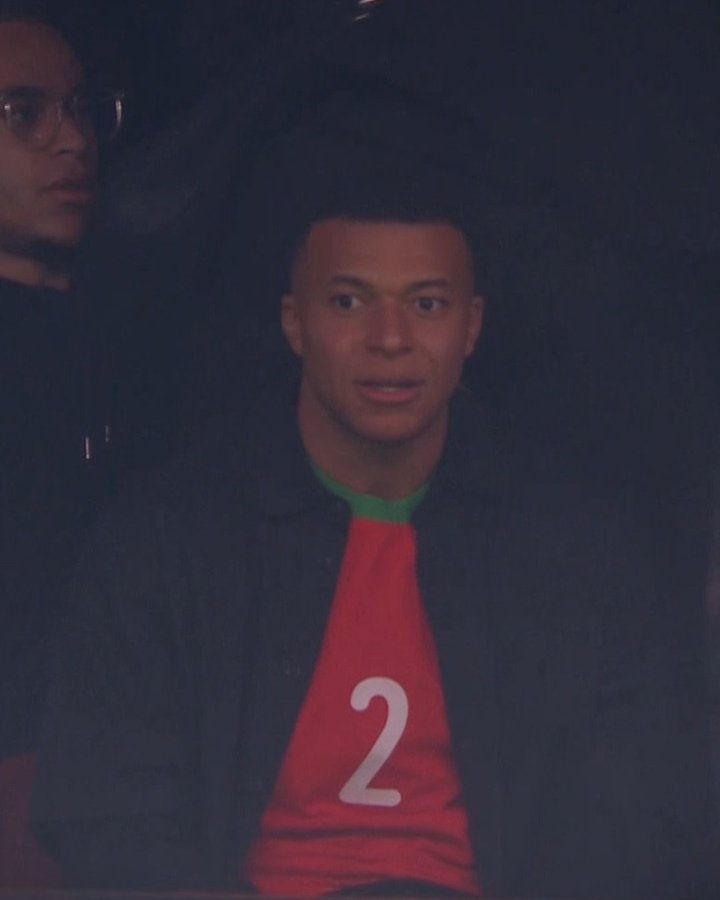 直播吧12月27日讯非洲杯小组赛A组第2轮,摩洛哥vs马里,本场比赛,皇马球星姆巴佩来到了现场观战,还身穿摩洛哥后卫阿什拉夫的2号球衣。