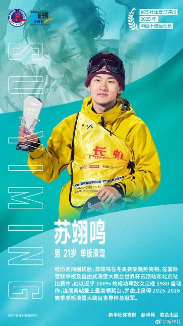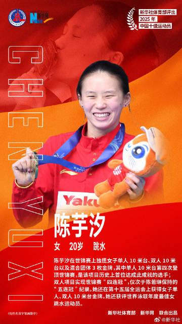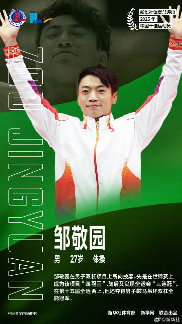 虎扑12月27日讯新华社体育部评出2025年中国十佳运动员如下: