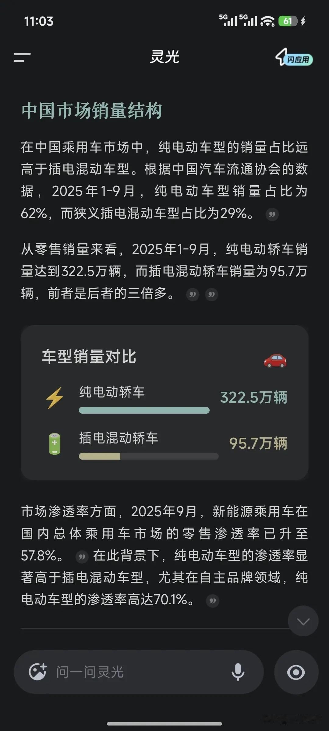 纯电销量是混动3倍!开了半年电车,我家燃油车直接停成“僵尸车” 说真的,以前总觉得“油电混动”是折中好选择,又能省油又没续航焦虑,结果今年看了销量数据直接惊到——2025年三季度纯电车卖了371万辆,混动车才167万辆,纯电销量竟然是混动的两倍多,全年更是要突破2000万辆大关!直到我自己提了纯电车,才算明白为啥大家都扎堆选纯电,家里那辆开了5年的燃油车,现在除了偶尔挪车位,基本停成了“僵尸车”。 作为真实车主,纯电的体验感真的和燃油车不是一个量级,这几个优势用过就回不去了: 首先是用车成本低到离谱!我家装了私人充电桩,晚上谷电才3毛8一度,百公里电耗15度,算下来跑一百公里成本才5块多。以前开燃油车,百公里油耗8升,油费得60多块,光上下班通勤,每月就能省500多,半年下来省的钱够给家里换个新家电了。而且纯电根本不用频繁保养,没有发动机、变速箱这些复杂部件,一年保养就换个空调滤芯、查个刹车,花200多块钱搞定,对比燃油车每次保养上千的开销,简直是省钱利器。 其次是驾驶体验太丝滑!踩油门就响应,没有燃油车的顿挫感,开起来安安静静的,市区堵车的时候再也不用听发动机的嘶吼,心情都变好了。以前觉得混动“油电切换”挺高级,实际开下来还是会有轻微顿挫,而且保养的时候还要兼顾油电两套系统,六万公里下来保养费比纯电高好几倍,纯属给自己找罪受。 还有就是智能配置真省心!现在主流纯电车型的车机系统都很灵敏,导航、语音控制随叫随到,不用低头按按键,安全性也高。反观我家那台燃油车,车机又卡又难用,连个实时路况都没有,现在坐进去都觉得不习惯。 不过说实话,纯电也不是完美的,北方冬天续航会打折,跑长途得提前规划充电桩,没有私人车位的话充电也确实麻烦。但如果像我一样,日常主要是市区通勤,偶尔短途出游,纯电的优势真的能覆盖这些短板。 现在终于懂为啥纯电销量能碾压混动了——不是混动不好,而是纯电在日常用车场景里,不管是成本还是体验,都做到了“降维打击”。