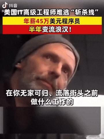 美国一博主采访流浪汉,询问他以前是做什么工作?没想到流浪汉竟然回答:半年前我是做IT的,Javascript高级工程师,年薪45万美元!这段采访引起了很多人共鸣。网友:“你永远不知道意外和明天哪个先来。” 信息来源:凤凰网国际 你没听错,David Chen,12年行业老兵,曾在Meta混得风生水起,基本工资加股票分红,年入45万美金。 为了这份工作,他几乎把所有时间都往公司里“扔”:每天加班到深夜,周末也泡在工位上,连个周末约会都很难腾出空。 这份高薪让他在硅谷帕罗奥图豪掷150万美元买下了小别墅,同事都喊他“人生赢家”,他自己也常说“终于有安全感了”。 可谁能想到,2024年10月,Meta来个“战略优化”,就把他给裁了。 那天早上,他还信心满满地在LinkedIn上说:“凭我这履历,找新工作绝对没问题!” 结果现实打了他一巴掌,投了80多份简历,只有3次面试机会,连主动降薪30%都没人理他。 更糟心的是,裁员潮一来,Meta股票暴跌42%,他原本靠股权收益贴补差不多1万美金的月供,全泡汤了。 2025年2月,银行直接收走了他的房子,存款也瞬间见底。 失业救济金一年最多领26周,每周才400美元,连房租都凑不齐,更别提家里开销。 房贷一断,信用分就暴跌,租房子被刷掉,找工作被背调卡住,正好凑成了“没房→没工作→又没钱→再没房”的恶性循环。 他苦笑着说:“我的技能没落后,只是市场突然用不着这么多人了。” 你以为这只是他一个人的故事? 2025年第一季度,全球科技行业裁掉7.8万人,硅谷就占62%。 AI一上来,12个人的活儿,现在3个人加个AI都能搞定。 年薪30万以上的工程师,也都得主动降薪去抢岗。 当地平均月租3000美元,45%的租客要把一半收入交给房东,无家可归人数一年猛涨8.2%。 现场的路人听了都傻了:曾以为高薪就能万无一失,可真到风口浪尖,一切都崩了。 网友也感慨地说:“你永远不知道意外和明天哪个先来。” 这桩采访在网上火了,引发了不少技术人的共鸣,高薪≠高保障,职业和财务上的双保险,才是真正的安全感。 其实,没有工作永远是稳定的,所以我们要保持危机感,可以多学点其他知识,一旦被裁员或者失业了,我们可以做别的工作来缓解压力,而不是一下子落入低谷。