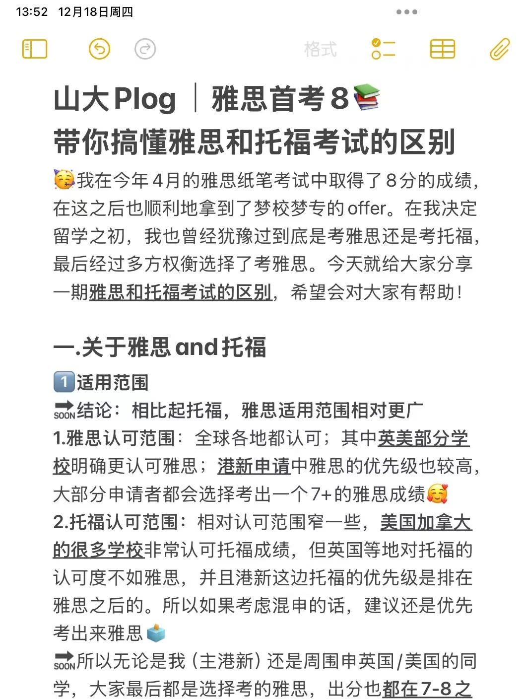 ⭕️个人情况:我在今年四月的雅思纸笔中取得了首考8的成绩,今年下半年也收到了梦校梦专的录取offer。如果有和我一样想要进行留学申请的宝,那么我建议大家提前弄懂雅思和托福的区别!