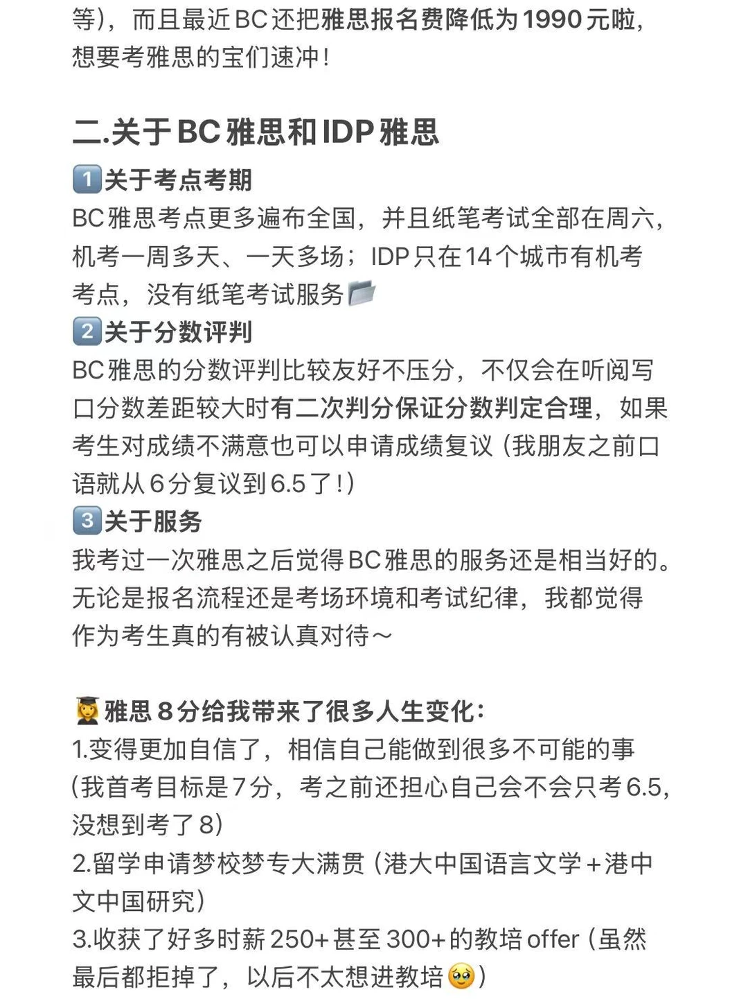 🥰关于雅思的含金量:很高!它对于我们的学习和求职真的有用(包括但不限于免考四六级/国考/外企等),而且最近BC还把雅思报名费降低为1990元啦,想要考雅思的宝们速冲!