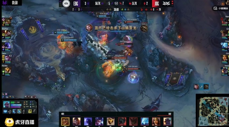 [39:48]第三条大龙刷新,JDG先行开打,JDG团灭EDG结束比赛!