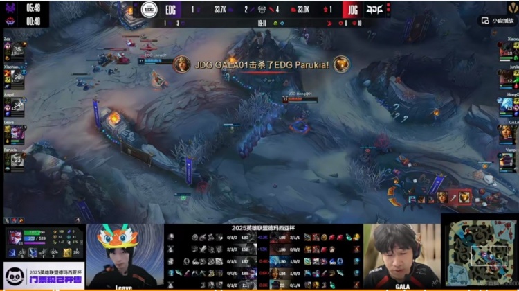 第三局:EDG进攻阵容不进攻GALA烬+HongQ龙王后期接管团战JDG拿赛点