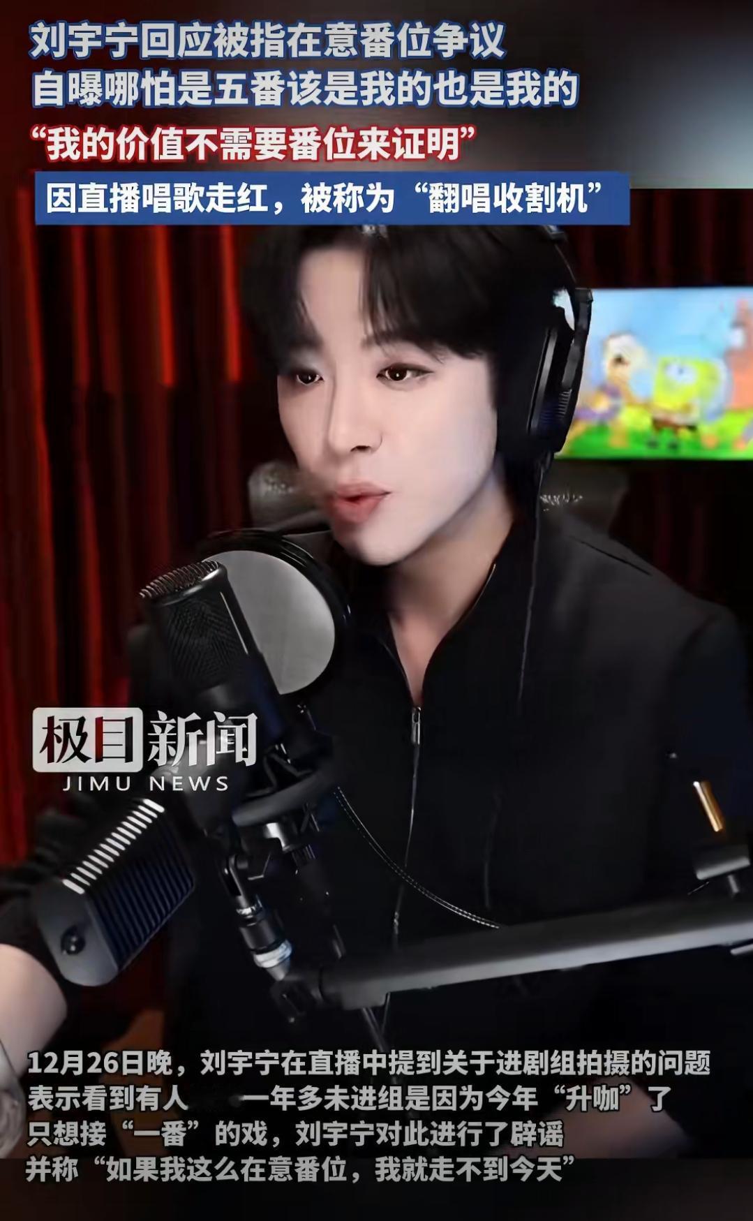 12月26日晚,刘宇宁直播回应“一年多没进组是因为只接一番”的说法,直接辟谣:“