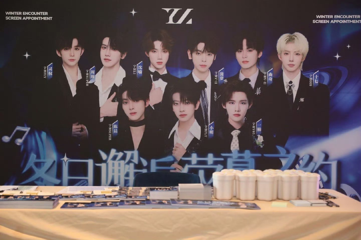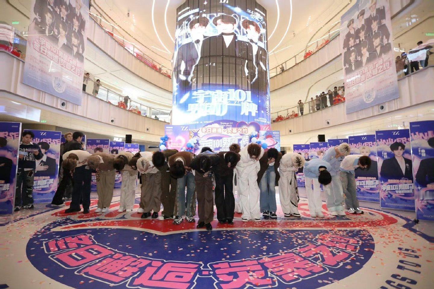 向新娱乐宇宙101男团厂牌举办的“冬日邂逅·荧幕之约”线下活动,在观影前,影厅外满满都是签到领取应援物料,领取逆应援观影小食,以及和成员物料合照的粉丝们。大家热情而充满期待,欢闹而不失秩序地等待着这次见面活动的开始。