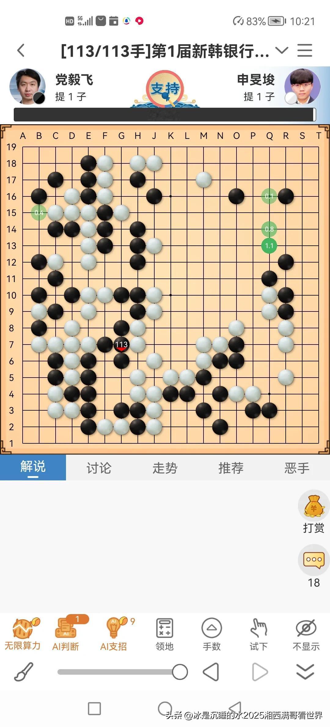 上午进行的两局焦点战可谓是火星撞地球!中国棋手王星昊对战南朝鲜棋手申真谞,党毅飞