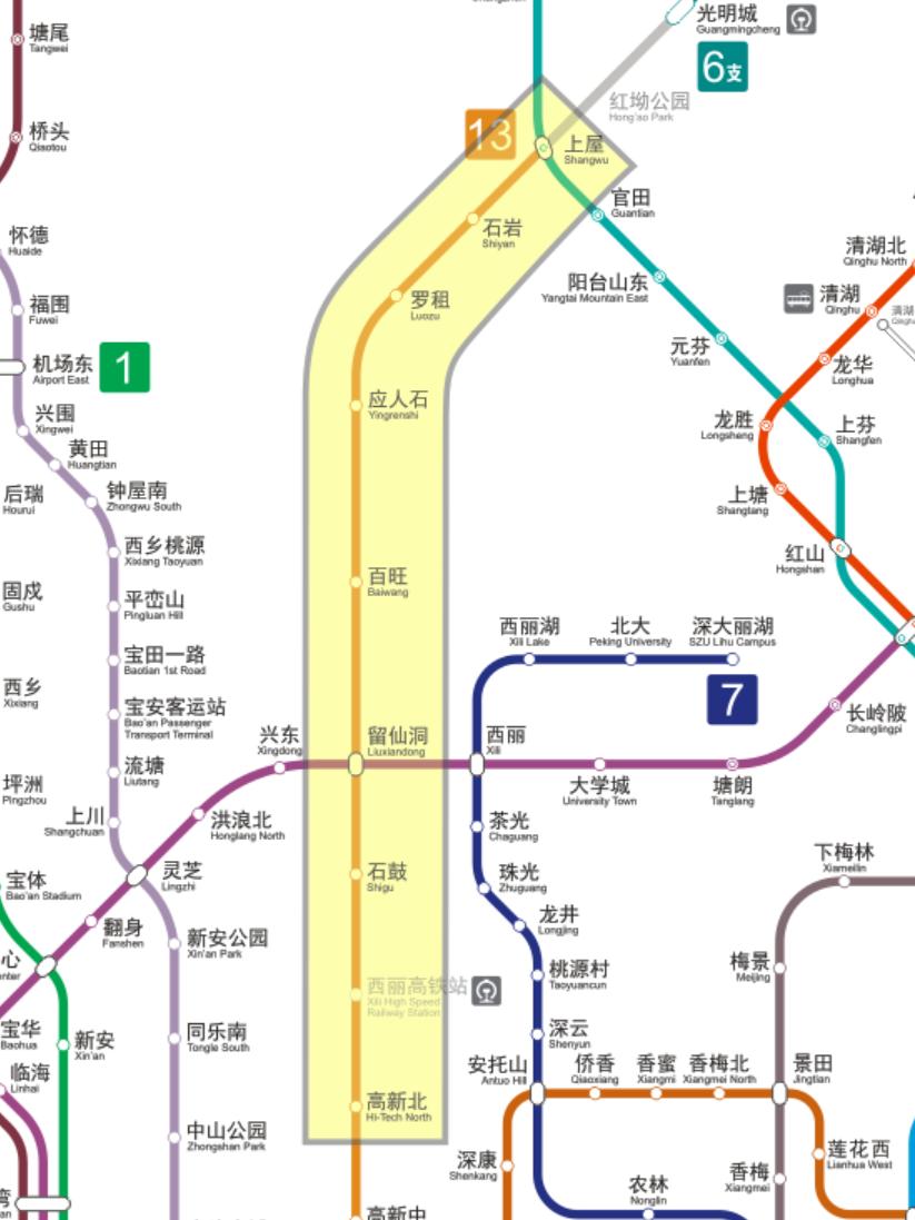 深圳地铁今日(2025年12月28日)开通以下13个站点: 5号线西延段(3站):湖贝站、东门站、大剧院站 8号线三期(1站):溪涌站 11号线二期(1站):红岭南站 13号线一期北段(8站):高新北站、石鼓站、留仙洞站、百旺站、应人石站、罗租站、石岩站、上屋站 以上线路开通后深圳地铁总里程达635公里,车站增至441座。 线路图已更新! 深圳地铁 深圳地铁线路图
