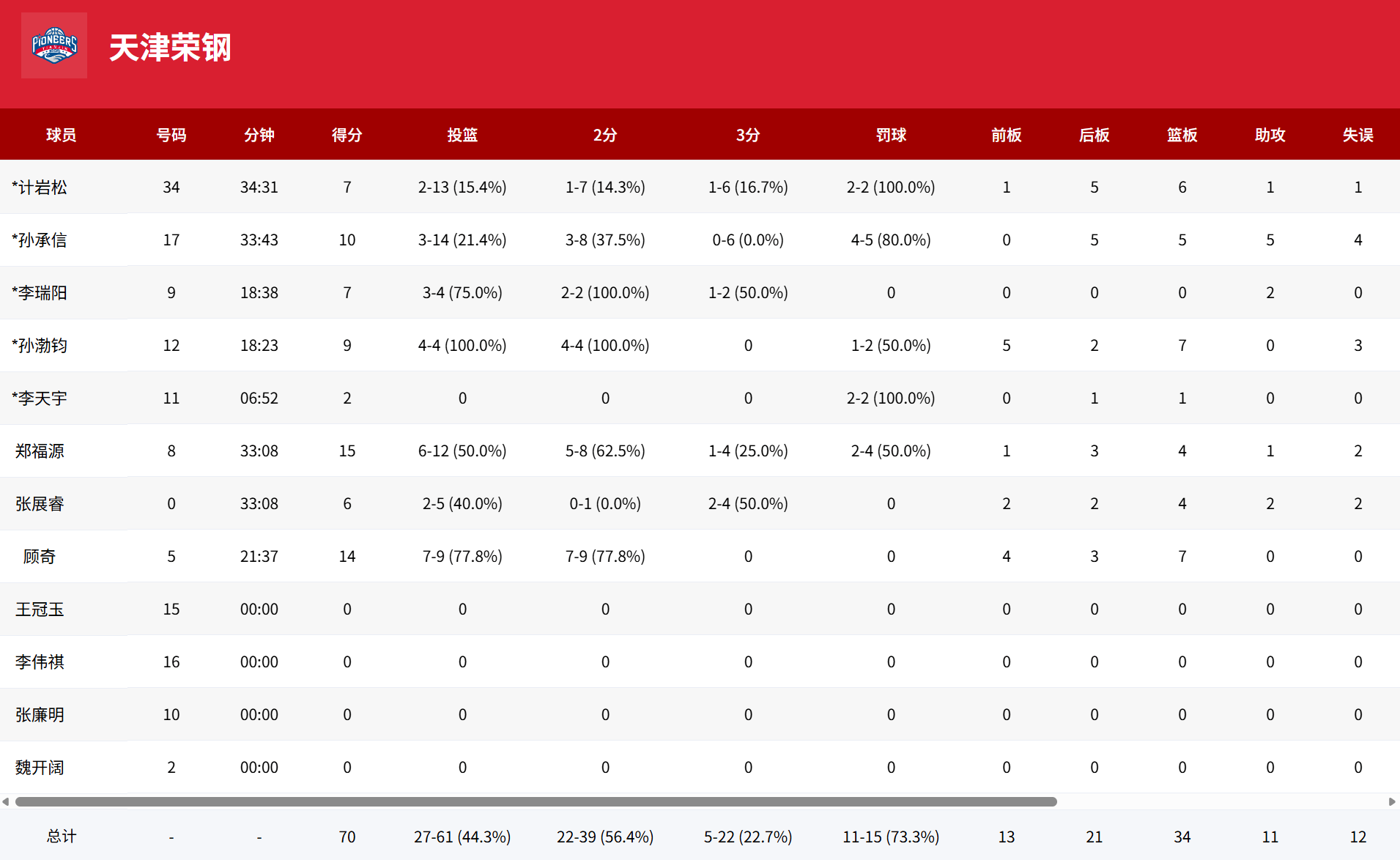天津:郑福源15分、顾奇14分、孙承信10分。
