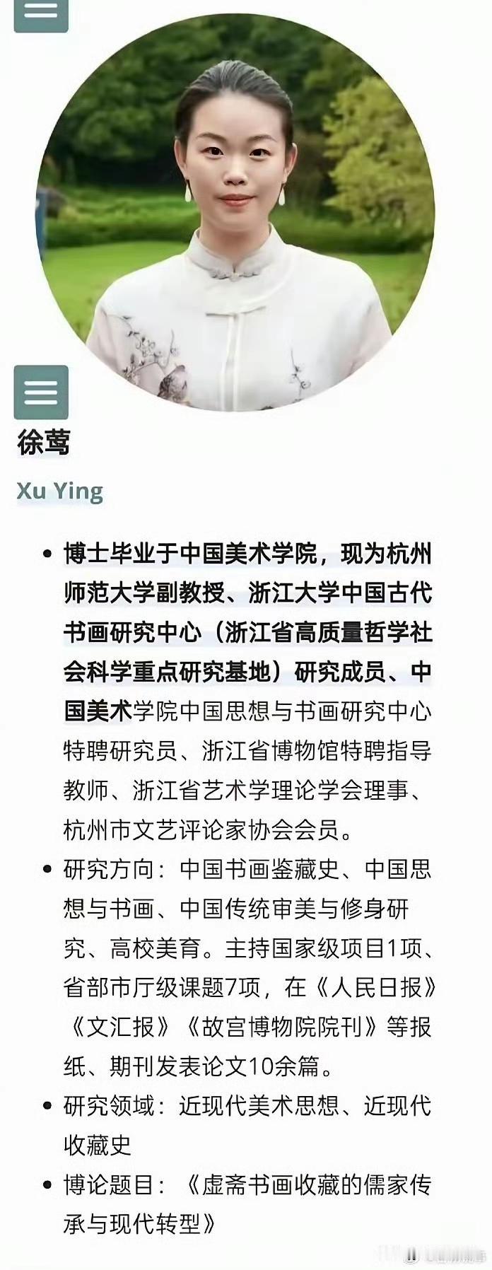 这几天南博案是炒的尽人皆知,现在又蹦出一个徐莺,这个人可了不得,人家本科在杭师范就读生物学,摇身一变,成了中央美院特聘研究员了,更离谱的是,人家还堂而皇之的冒充庞家后人,竟然在南博开了一个庞家画展。 这是谁给她的胆子呢? 很神奇的是,当年南博的前院长叫徐湖平,两个人同姓,有没有关联呢,为啥那个徐莺胆敢冒充庞家后人,还在南博这种国家级别的地方开庞家画展,最后冒充的被揭穿,这徐莺像没事人一样,有点神奇! 有网友直言,这里面的水太深了。
