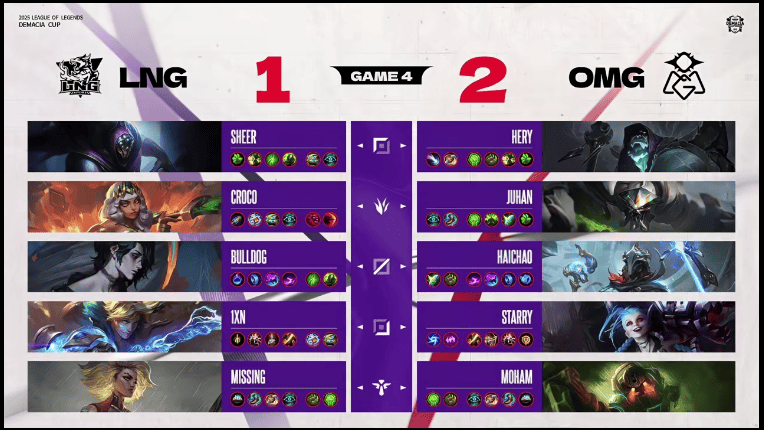 OMG选用:Hery掘墓、Juhan蝎子、Haichao三只手、Starry金克丝、Moham泰坦