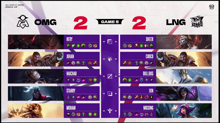 虎扑12月28日讯[GAME5]OMG蓝色方,LNG红色方