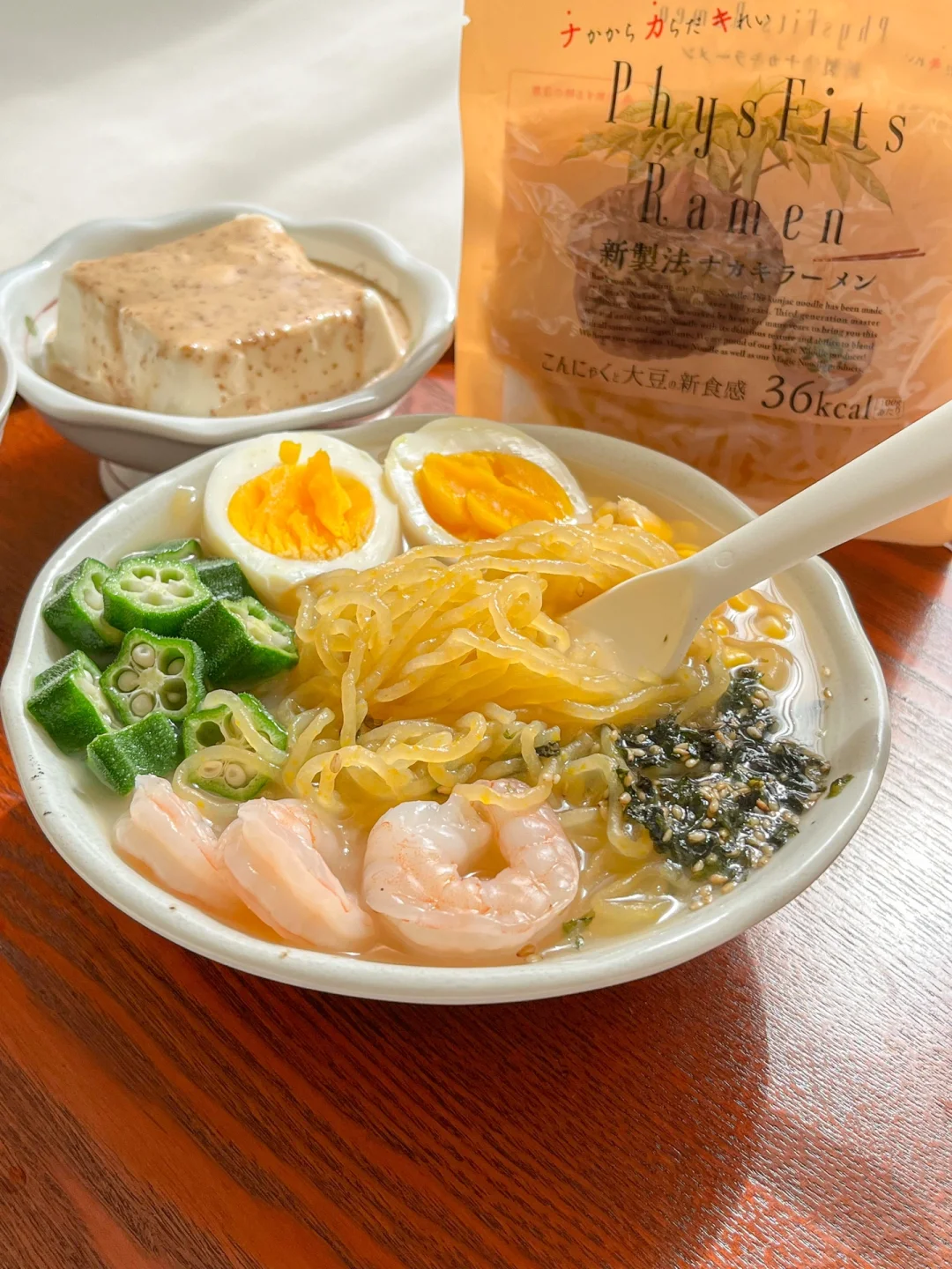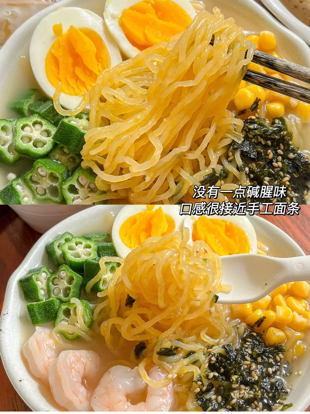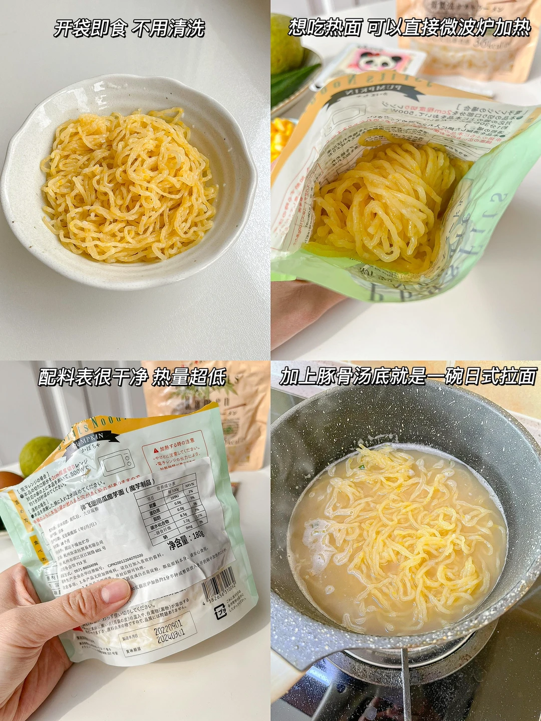 我用的魔芋面还是体飞适的,主要是喜欢它没有碱味,是新鲜魔芋泥制作的。吃起来口感最接近手工拉面,QQ弹弹的~一袋才70大卡,独立包装很方便,开袋就能吃。凉拌面或热汤面都很适合。搭配和风酱汁或番茄汤底、豚骨汤底都很搭。
