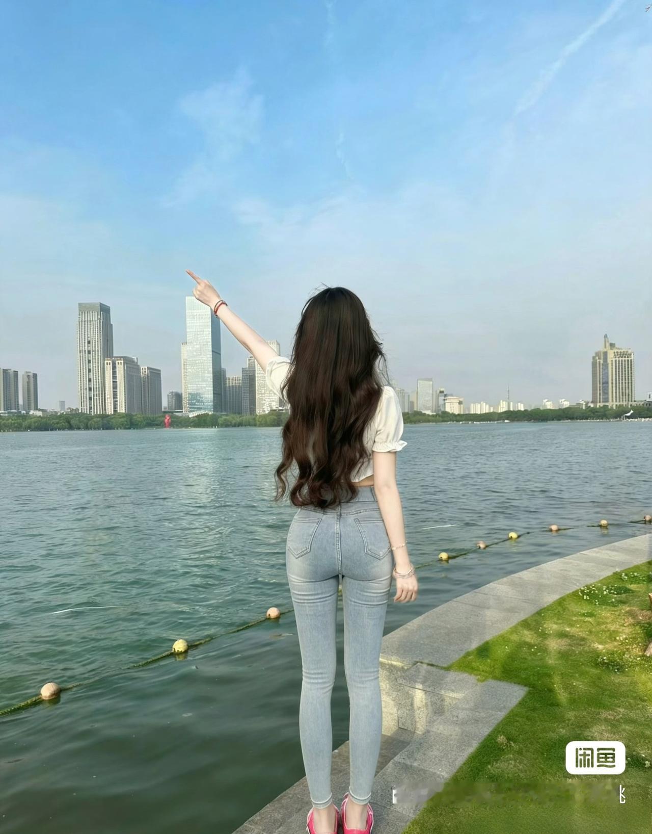 牛仔裤加白衬衫,这经典搭配确实简约又时髦,再配上手机和手链,都市风直接拉满。不过
