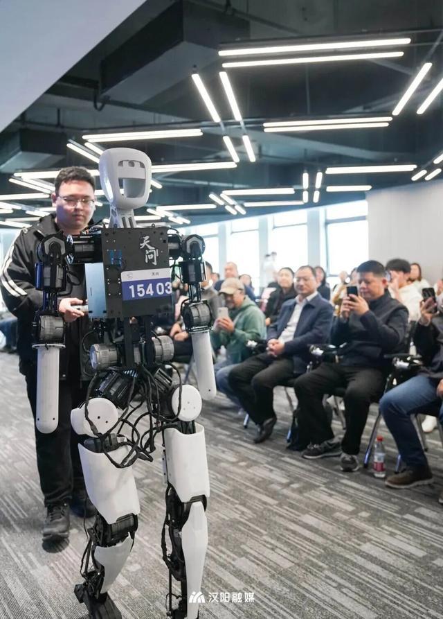△位于汉阳四新大道的百度飞桨(武汉)人工智能产业赋能中心(左);2025年10月29日,武汉大学自主研发的首个人形机器人“天问”亮相汉阳(右)。