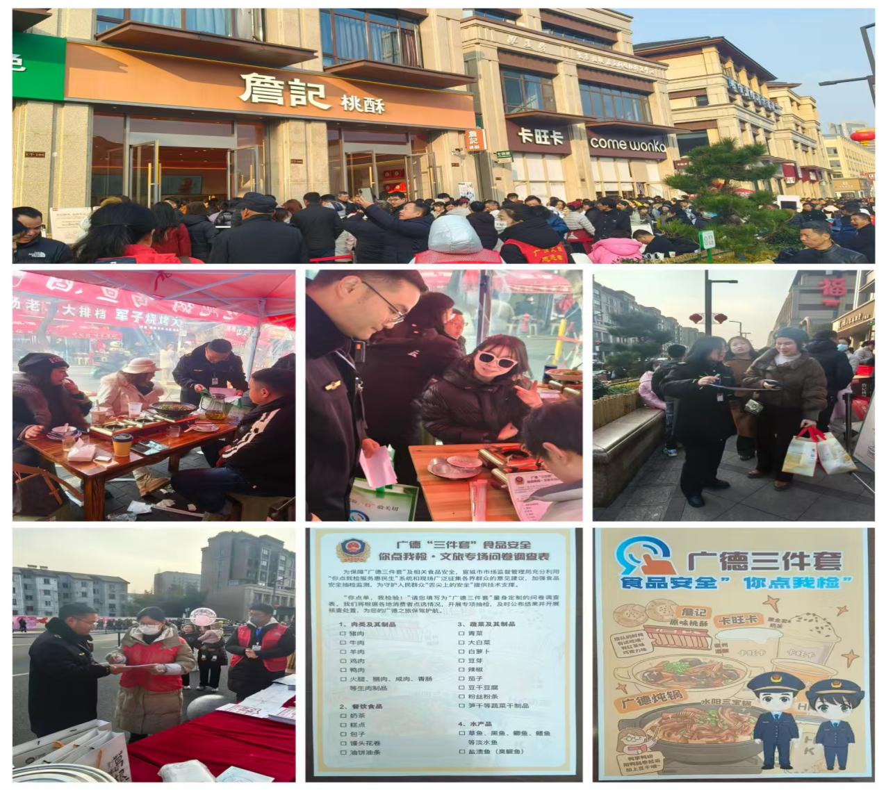 市场监管部门为“广德三件套”量身定制问卷调查表,囊括了这些网红食品中的重点和特色品种。工作人员在绥安路和迎春街向游客宣传“你点我检”政策,引导他们在点选表单上勾选希望抽检的食品品种,作为近期开展专项抽检的重要依据。让游客从被动接受变为主动参与,增强了消费者对食品安全的信任度。“工作人员询问我们最关心哪些食品的安全,然后让我们直接选择想要检测的品种,这种开放式的监管让人印象深刻。”几位来自浙江的游客认为这种监管举措深得民心,对活动纷纷点赞。