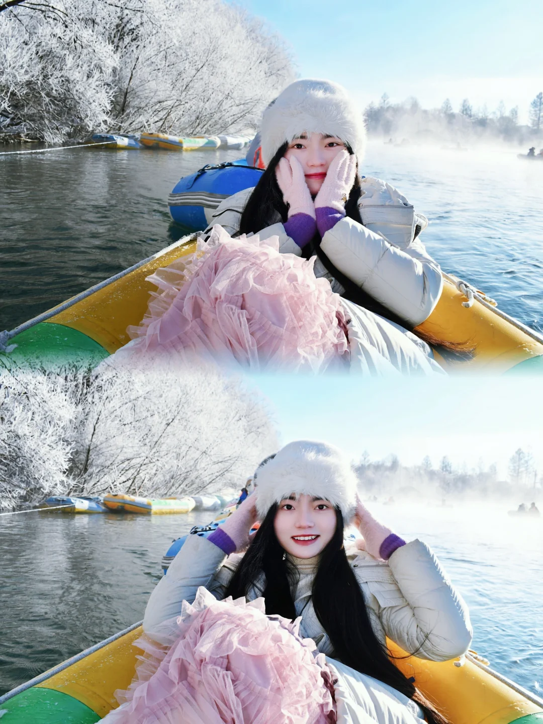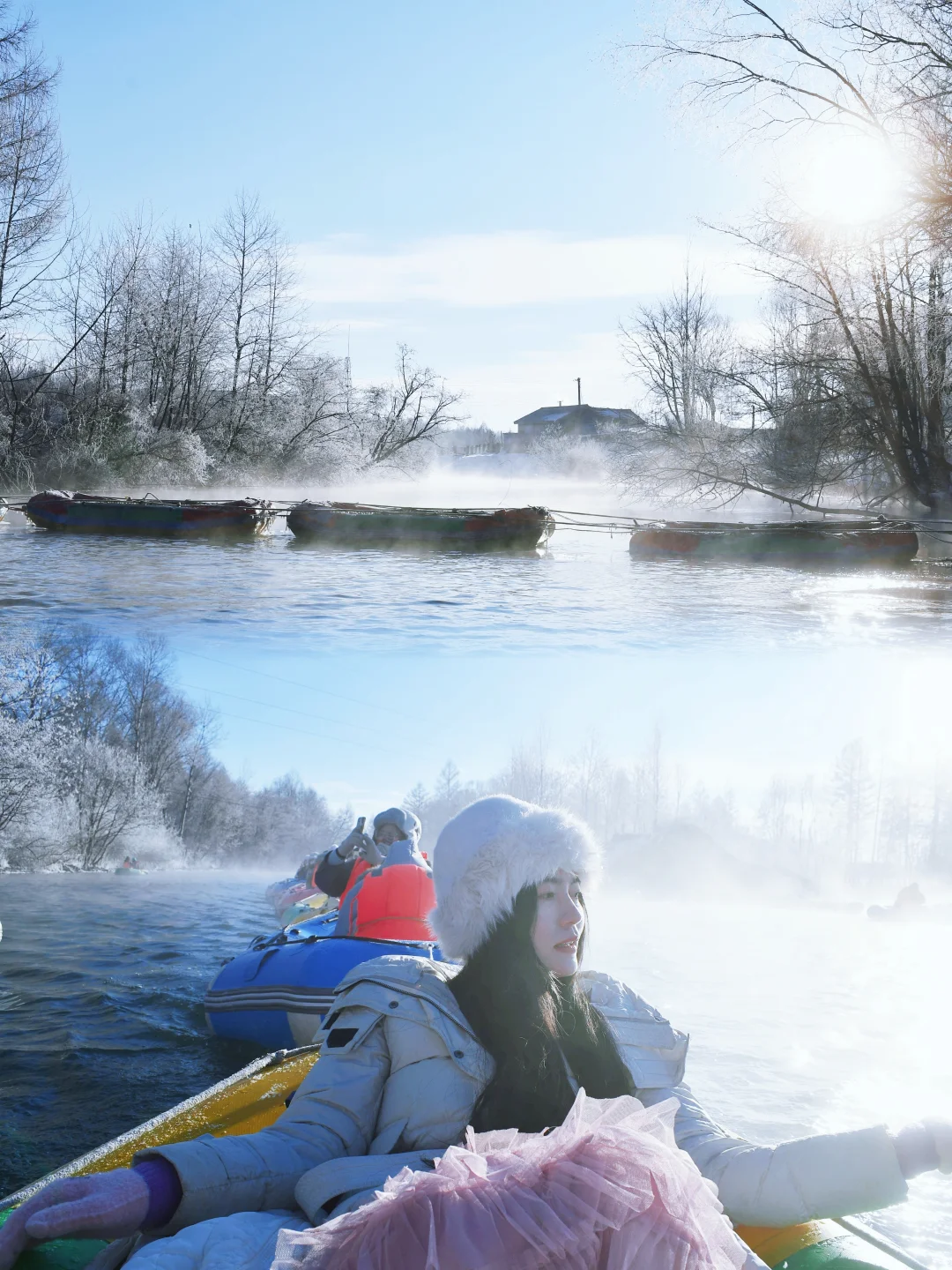 日出时刻的雾凇漂流,真的太浪漫了!! 河两旁白茫茫的雾凇,水面上雾气弥漫,日光打在雾凇上,水雾上,就像仙境,真的太浪漫了!! 一定要记得早点去排队,最好五点半就起来,人多的话得排队一小时,特别赶在日出时刻,就可以遇见绝美的画面~记录吧就现在 是时候去冰嬉了 长白山旅行 长白山漂流 雾凇漂流 冬日治愈系风景 这就是东北冬天的浪漫吧 冬日旅行计划 初雪穿搭 新年旅行第一站