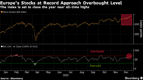 今年最后一个交易周伊始,欧洲股市刷新纪录高点,投资者密切关注围绕乌克兰潜在和平协议的谈判进展。