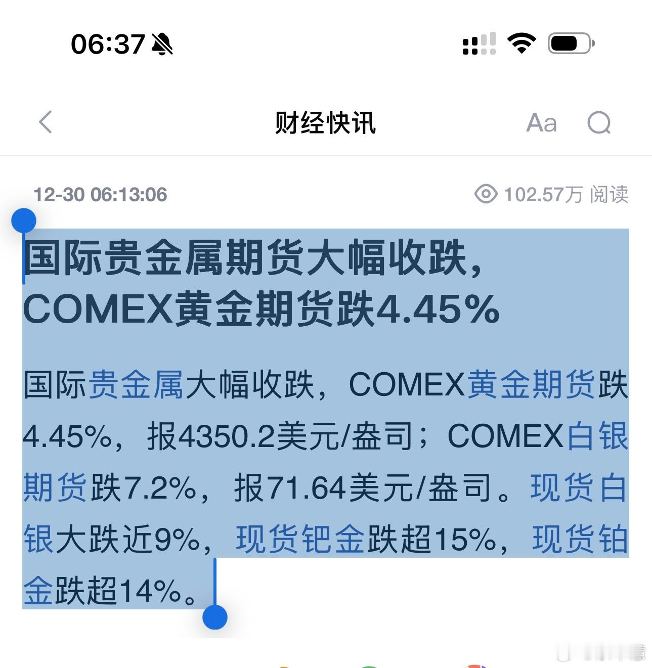 贵金属史诗级暴跌 原因找到了 太惨烈了!COMEX黄金暴跌4.45%,白银跌7.2%,钯金重挫超15%!三大利空引爆崩盘:芝商所上调保证金、美联储降息推迟、俄乌冲突缓和!从暴涨到暴跌,一天蒸发千亿市值,投资者彻夜无眠!黄金