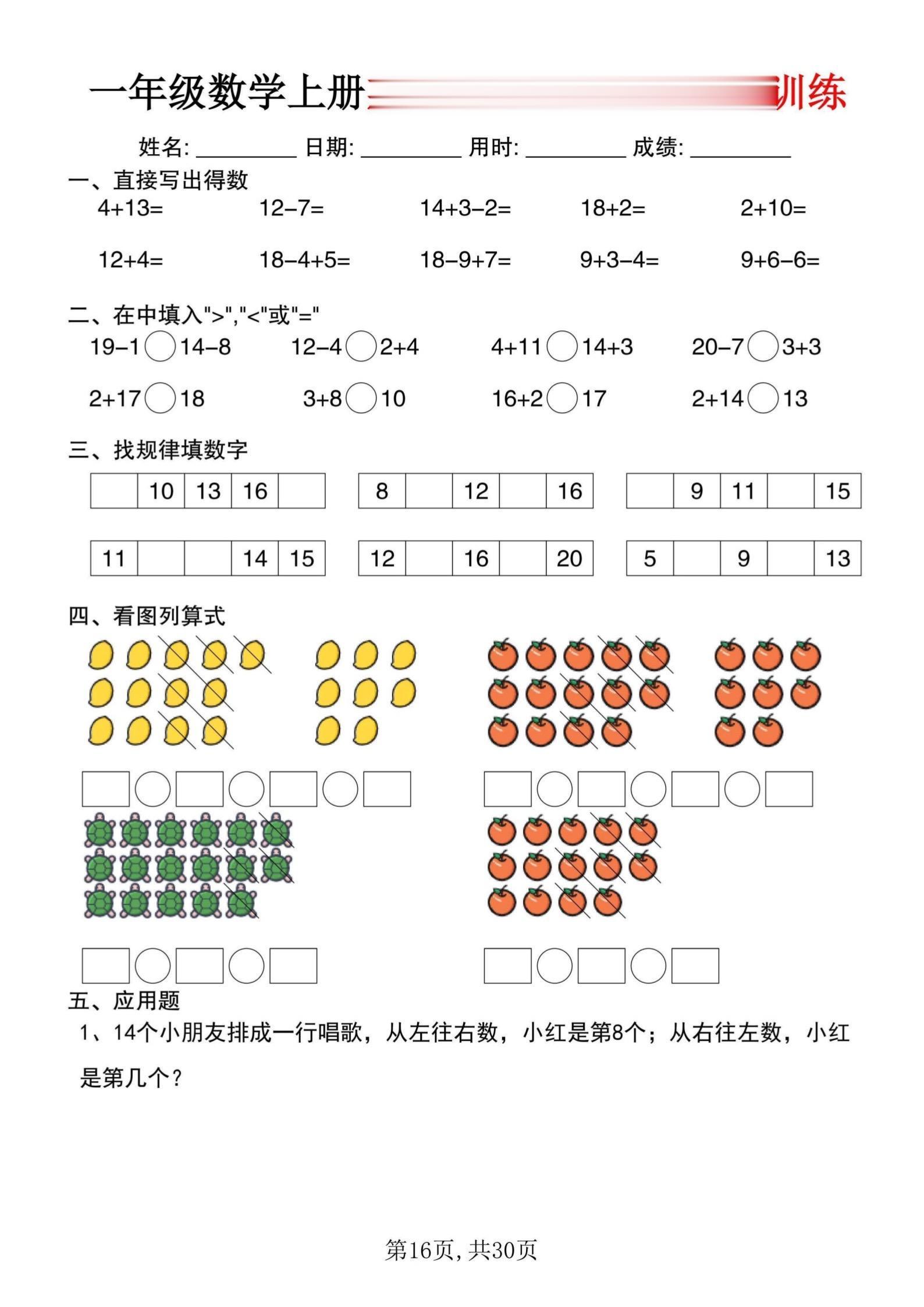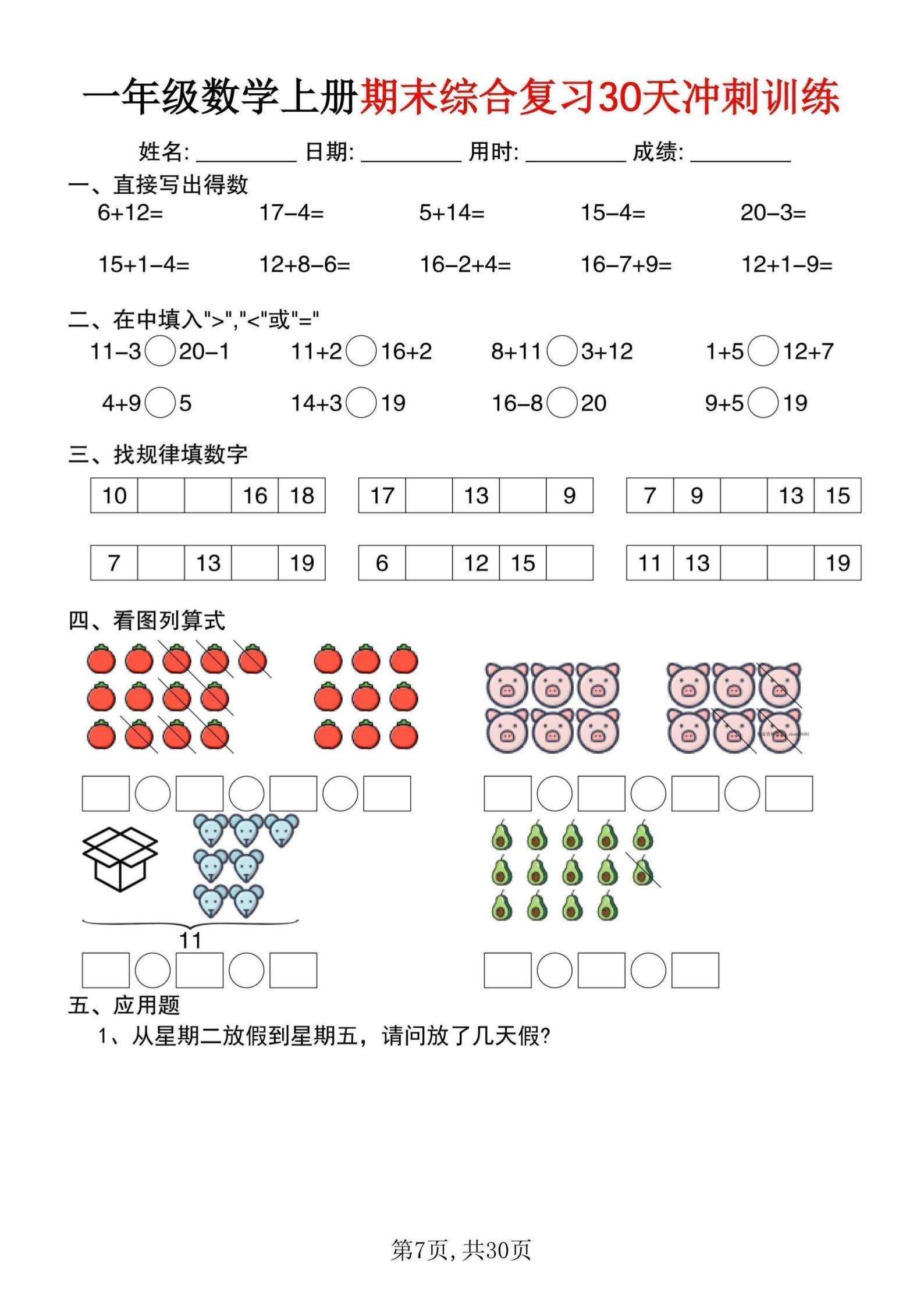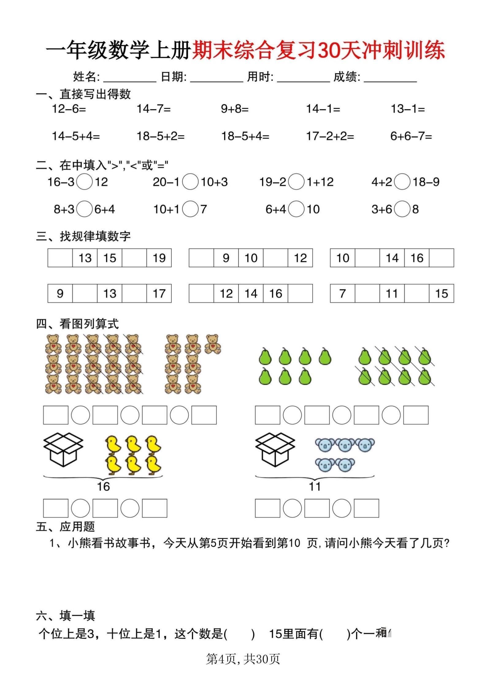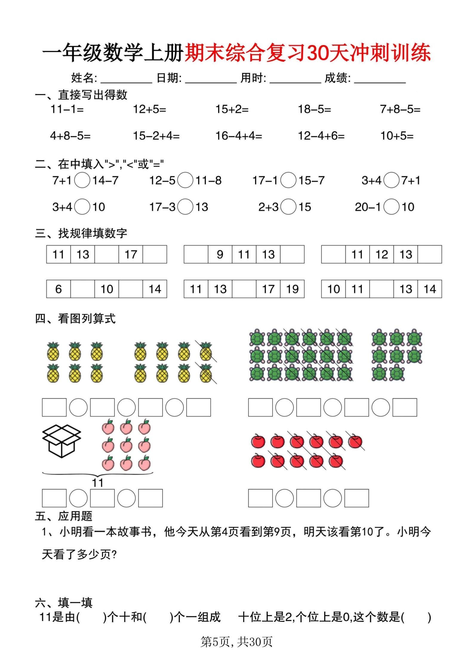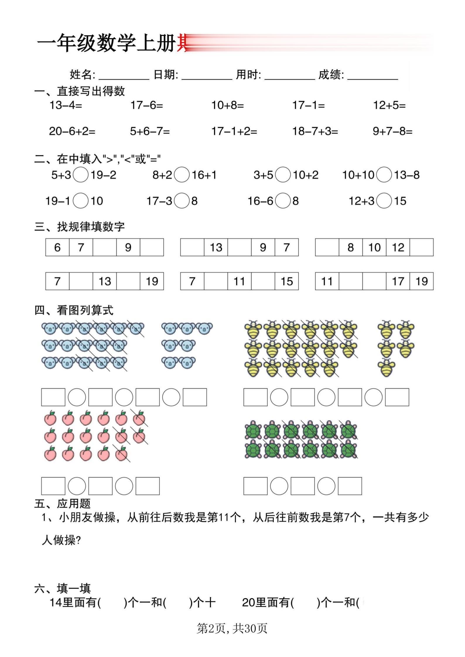 一年级上册数学期末冲刺练习。学习辅导资料 期末复习 必考考点 今日分享 每天跟我涨知识 有需要可以自行下载打印