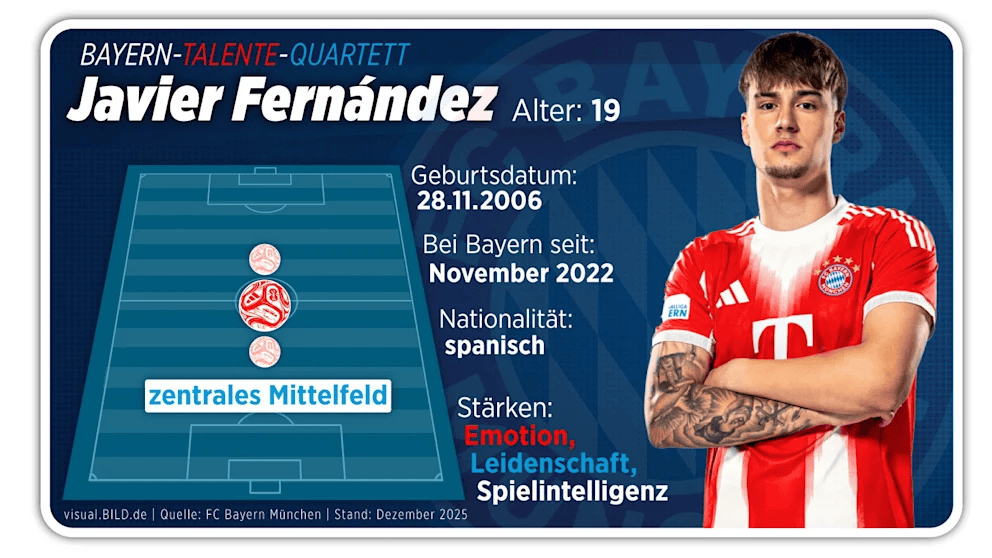 2024年1月,19岁的哈维尔-费尔南德斯在马德里竞技青训营效力四年后加盟拜仁慕尼黑。国际青年足球专家们当时普遍认为,这位才华横溢的中场顶级天才很快就能代表一线队出战。