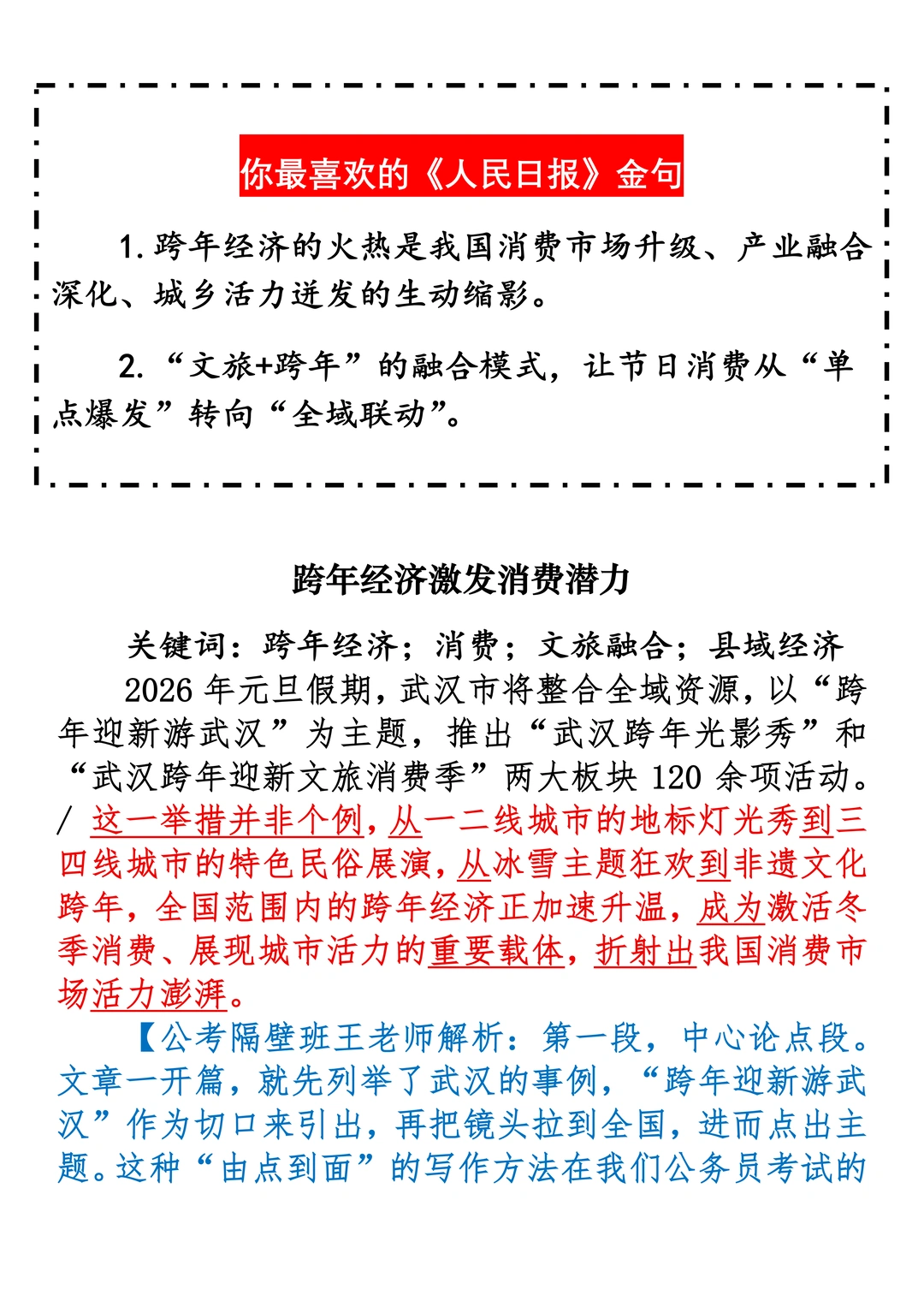 如何抄写:每日抄写文章发在“公考隔壁班王老师”账号,红色字是重点句和结构句,黑色字是正文,蓝色字是解析,大家抄写时不必抄蓝色字。建议先通读全文,做到心中有数再开始抄写,效果会更好。 关于文章:抄写文章来源于人民日报,但每篇文章我都根据申论考试要求进行了修改:一是重写或修改开头、结尾;二是统一段首句句式结构;三是调整段落字数,使文章结构更均衡;四是简化复杂长难句,使之更具可模仿性。每篇文章无论修改多少,都是基于申论考试要求,毫无对人民日报文章品评之意。(此处致敬人民日报)