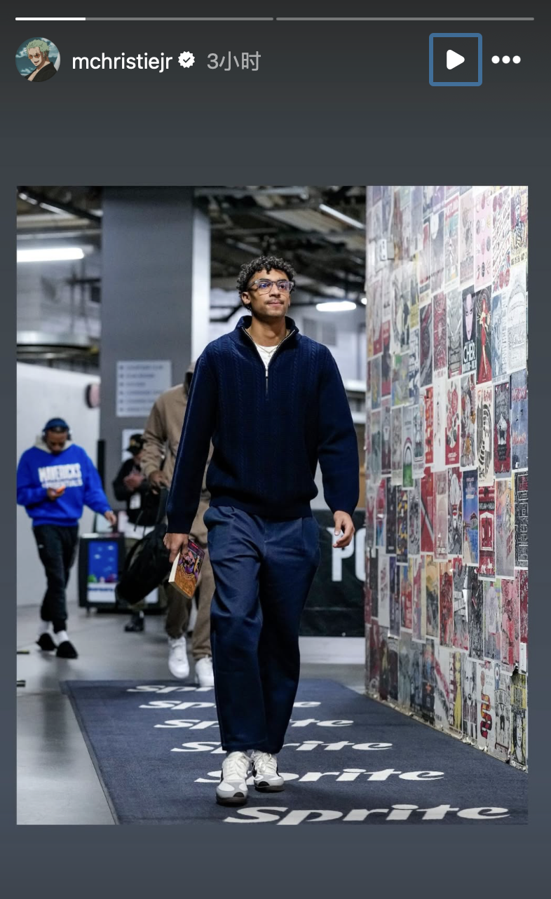 虎扑12月30日讯独行侠球员马克斯-克里斯蒂更新Ins,晒出一张自己的入场照与球迷分享。