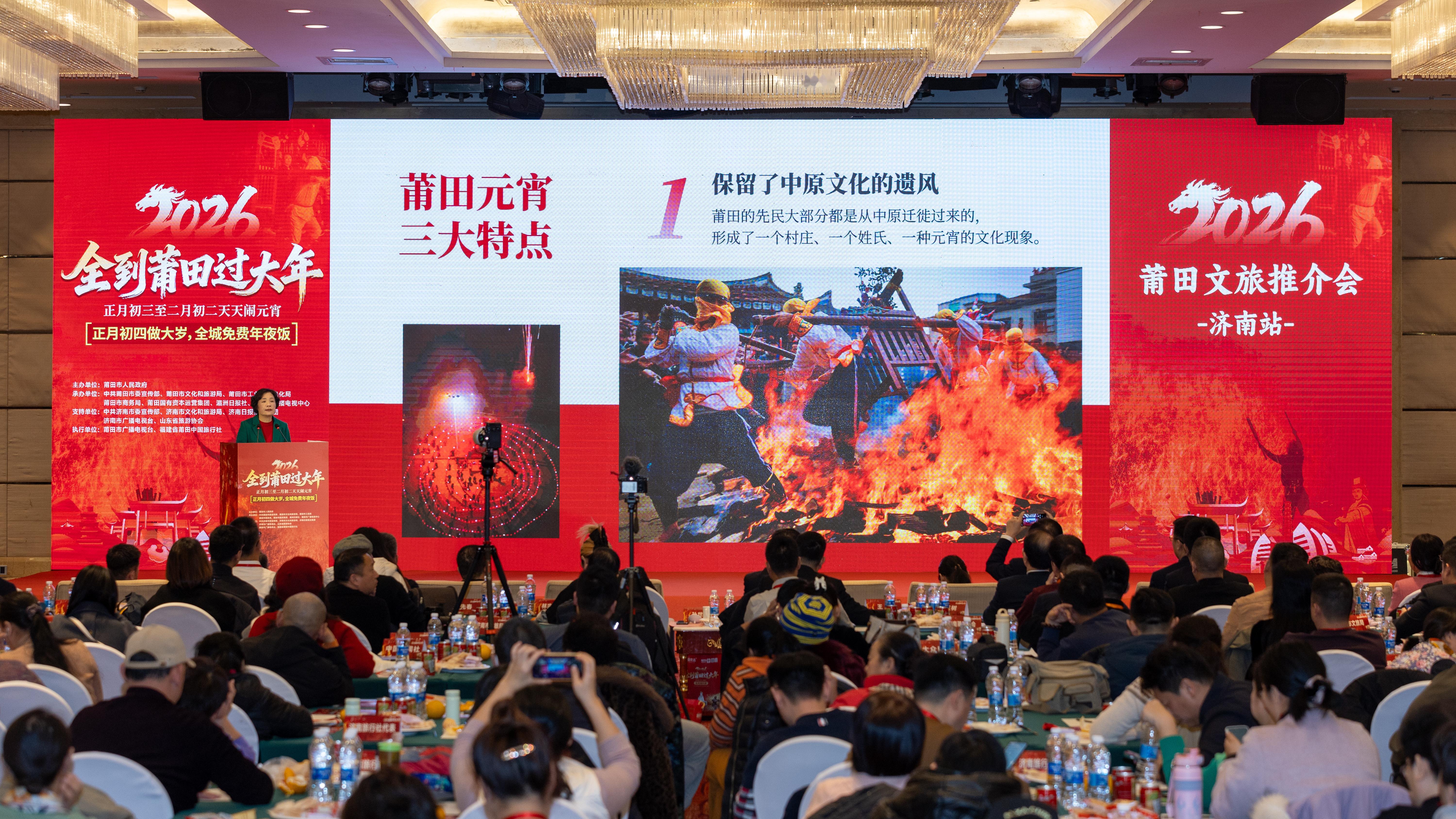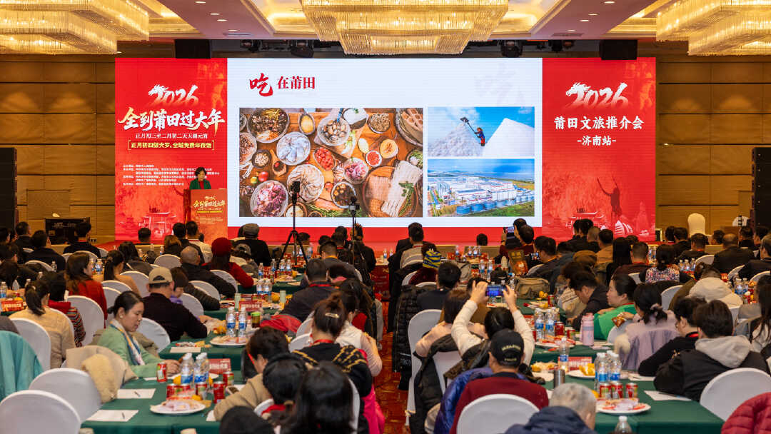 济南 12月30日,“全到莆田过大年”文旅推介会在山东济南举行。推介会上,济南、莆田两地领导共叙渊源,提出要让泉文化、儒家文化与妈祖文化相融,打造跨区域精品线路。莆田带来 “一年两度年、一月闹元宵” 的独特民俗,邀游客正月赴莆,体验打铁花、妈祖巡安等特色活动。本次活动向济南及全国游客发出诚挚邀请,2026年正月,全到莆田过大年,体验最火热的元宵民俗,感受最地道的宋韵闽风,来一次全国独一无二的莆田“过年”!济南