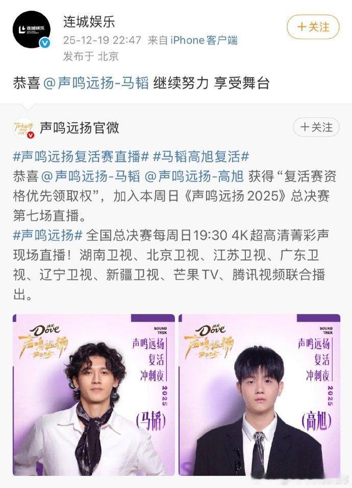 青你老秀人愿旗下员工得音综冠军青你老秀人连淮伟盼旗下马韬拿音综冠军,这波操作太圈粉了!前辈对后辈的支持真的好戳心! 声鸣远扬