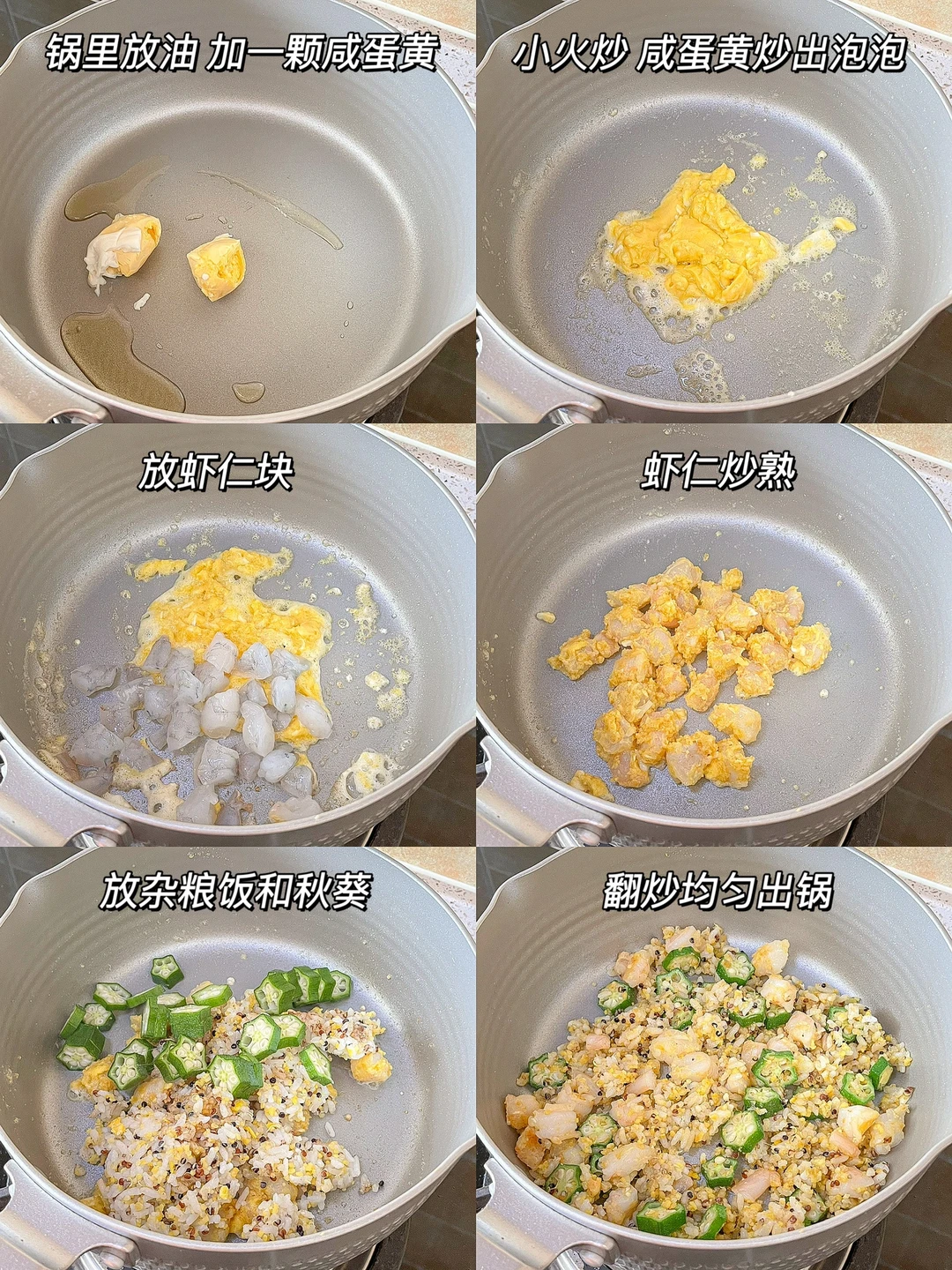 ²咸蛋黄秋葵虾仁炒饭